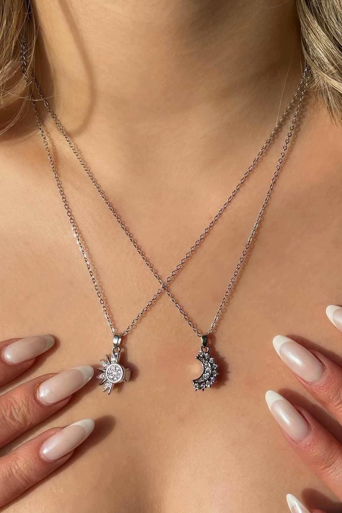 Gümüş Renk Ay Ve Güneş Figürlü Çelik Best Friend Kolye