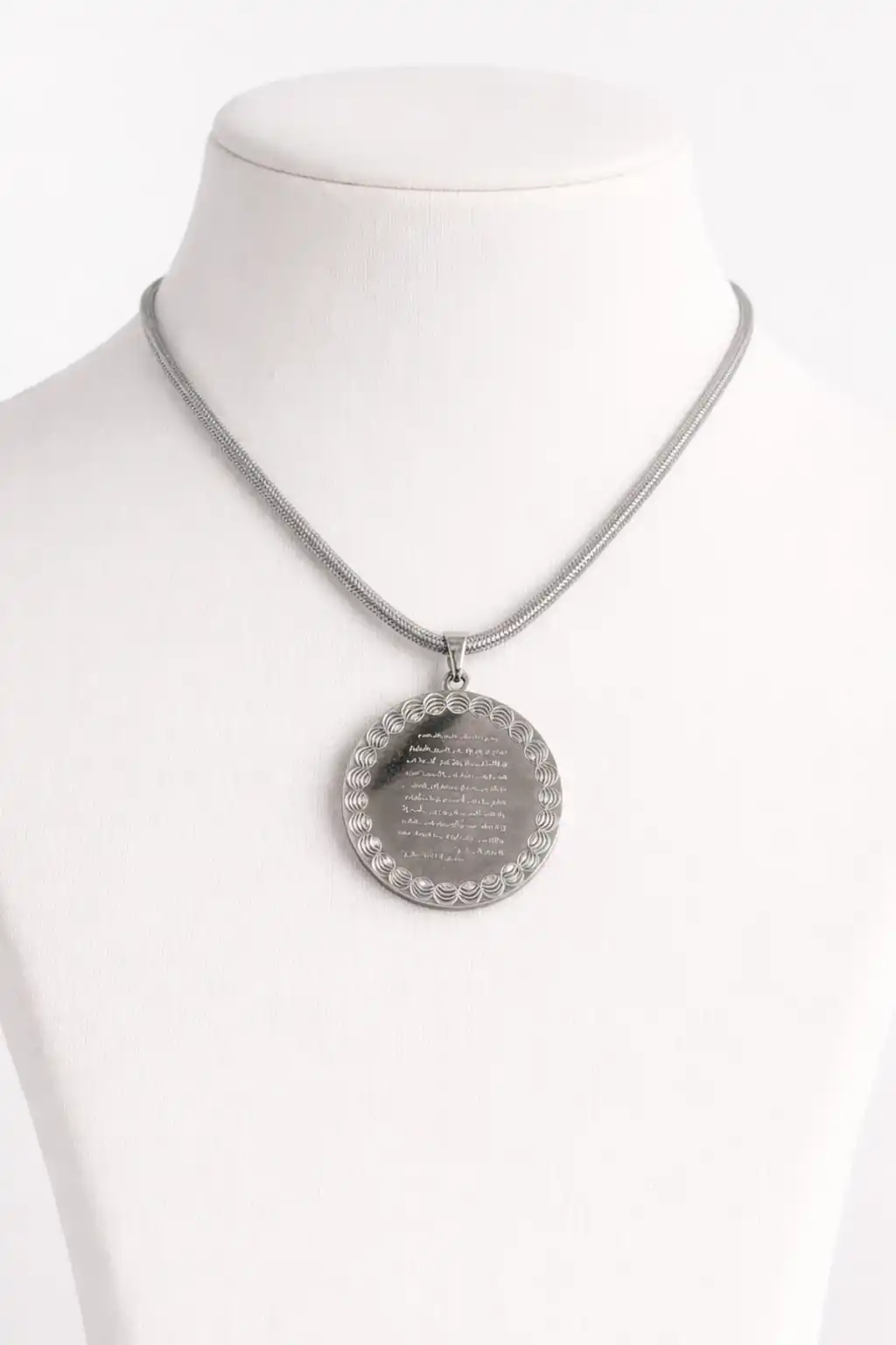 Gümüş Renk Ayet Yazılı Çelik Kolye