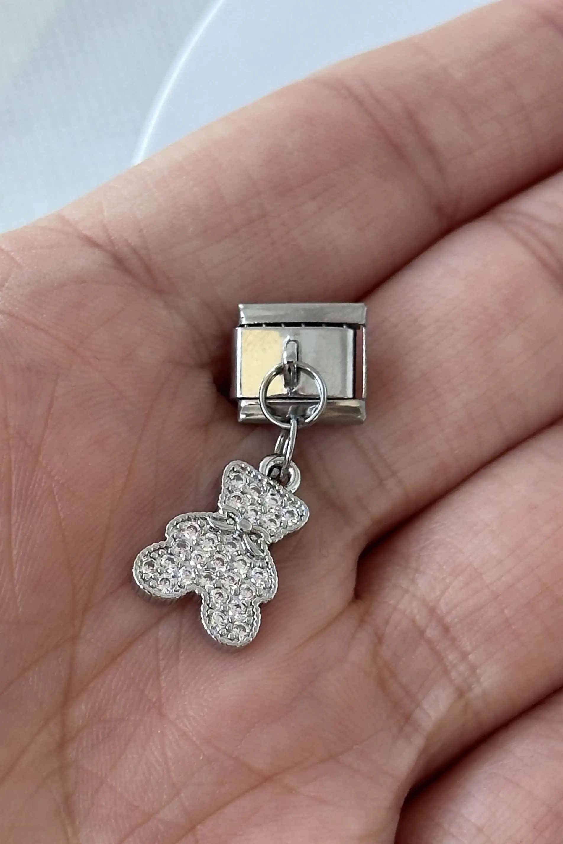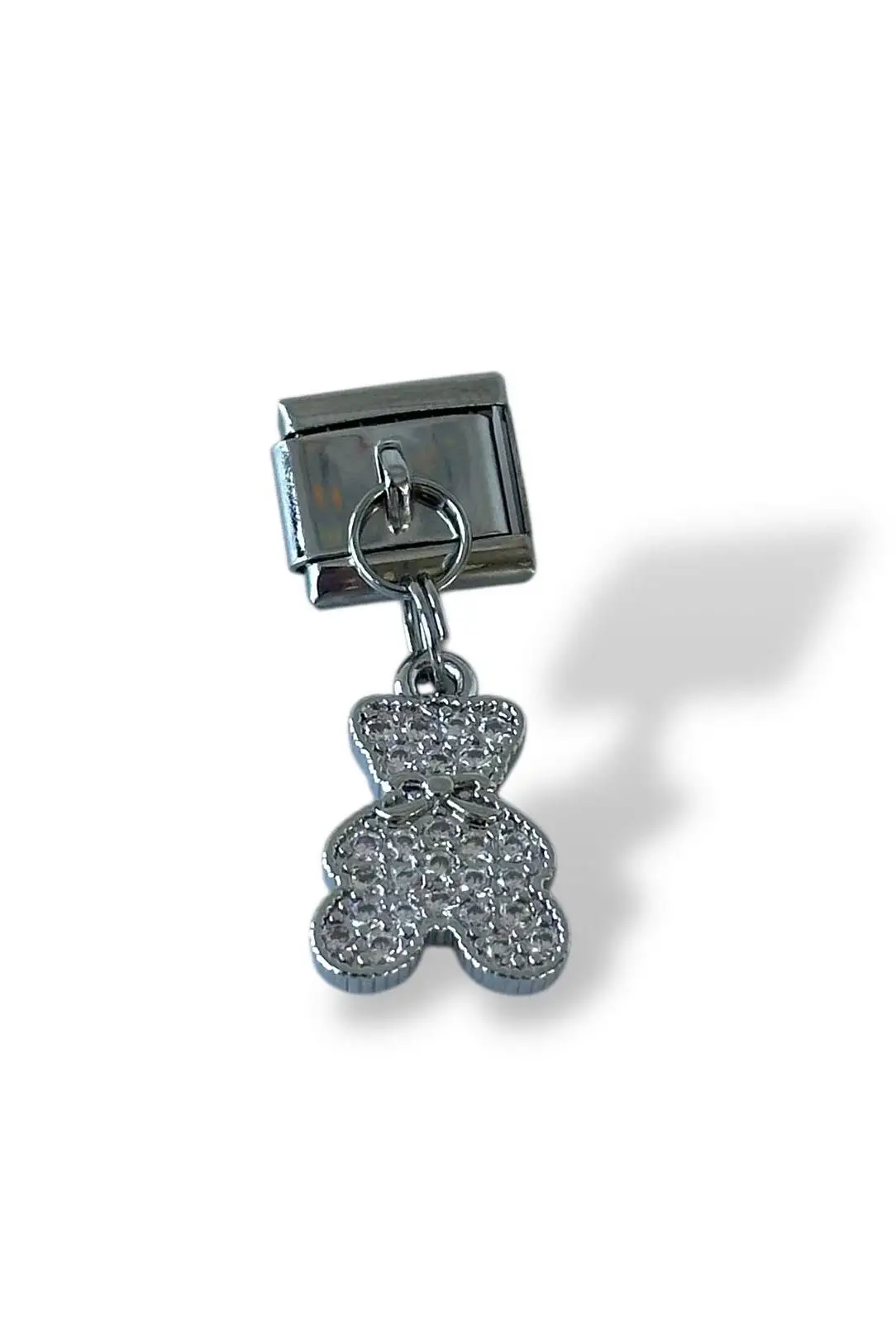 Gümüş Renk Ayıcık Figürlü Taş Detaylı Çelik Nomination Charm (Tek)