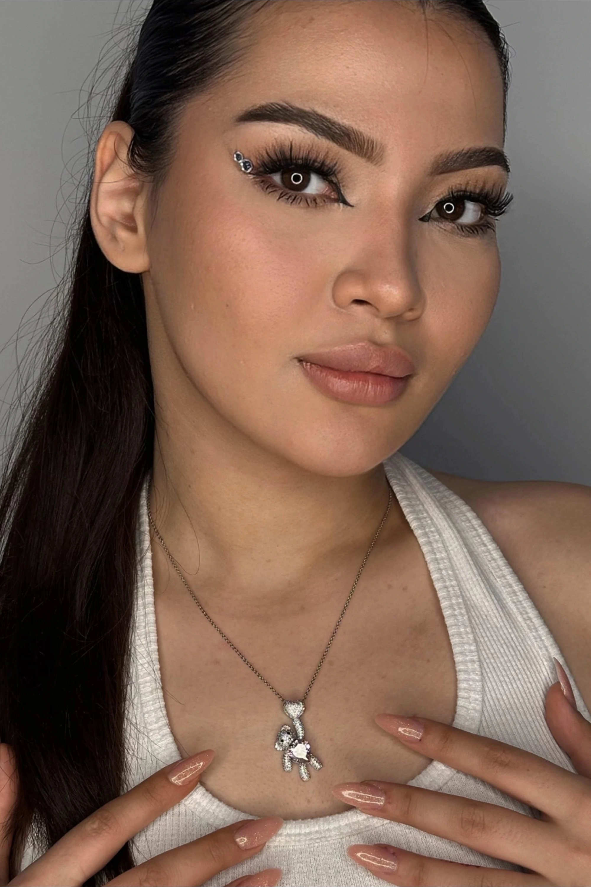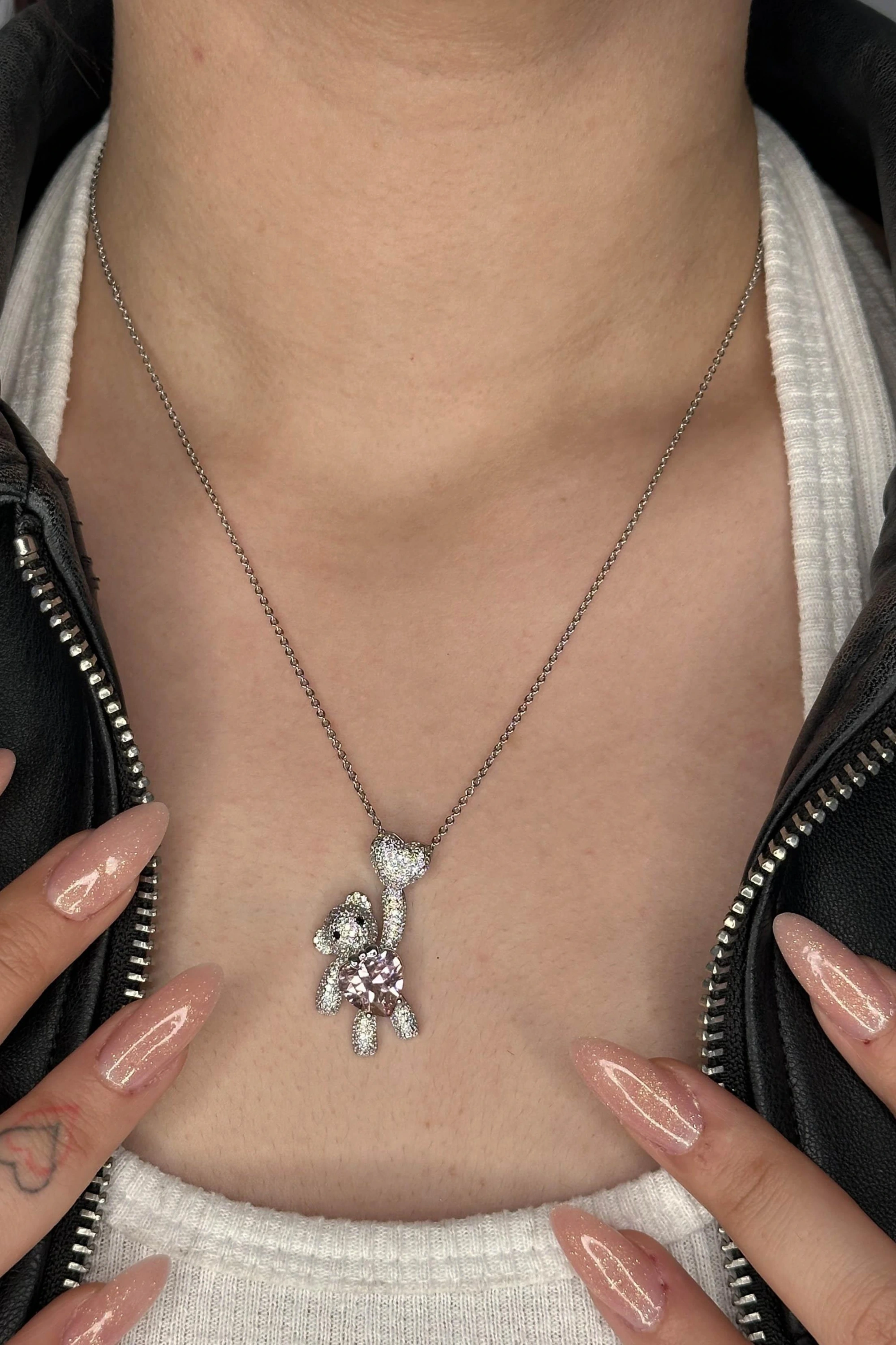Gümüş Renk Ayıcık Figürlü Taş Detaylı YSX Kolye