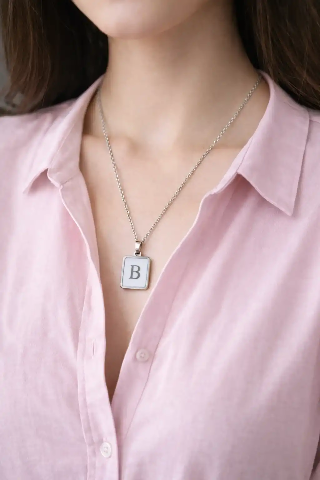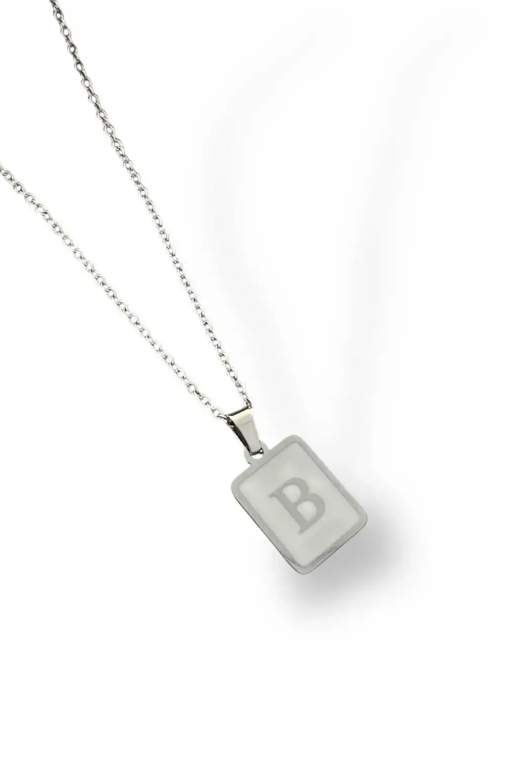 Gümüş Renk B Harf Çelik Kolye