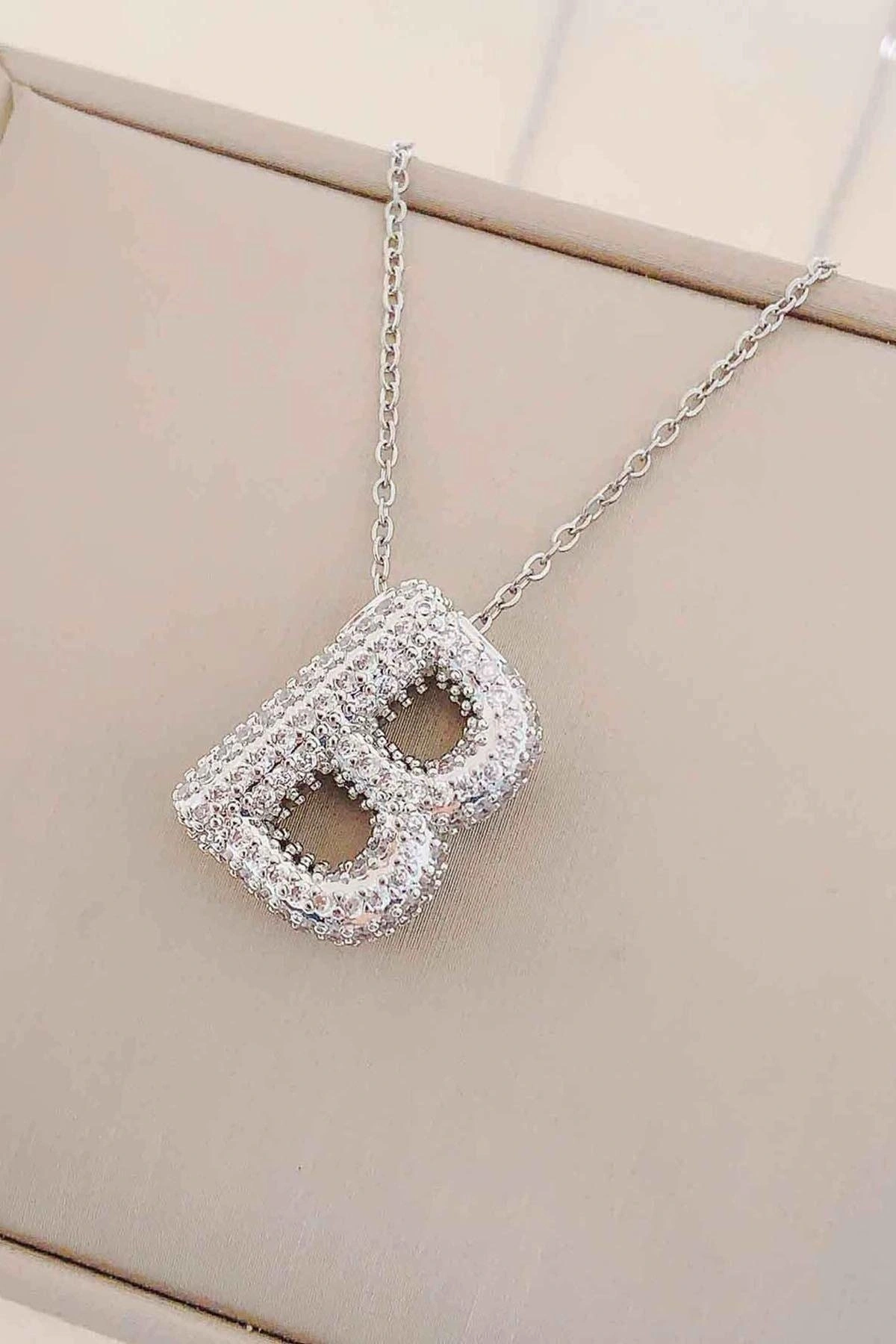 Gümüş Renk B Harf Taş Detaylı Çelik Kolye