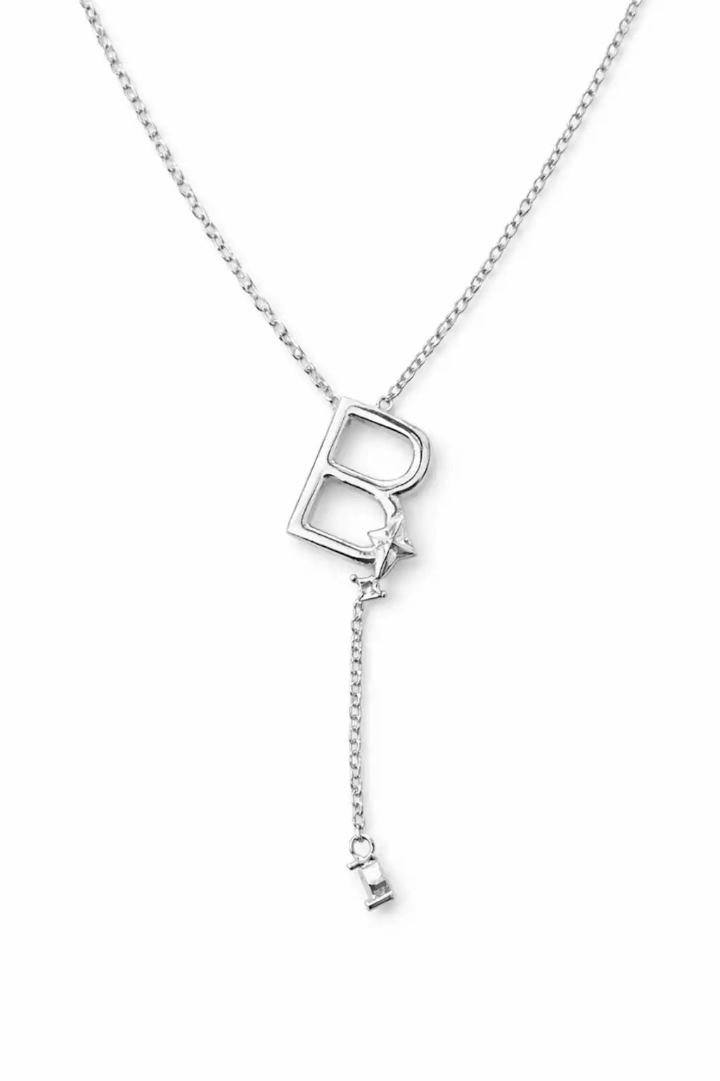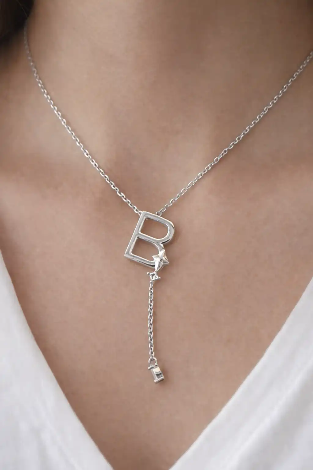 Gümüş Renk B Harfli Taş Detaylı Çelik Kolye