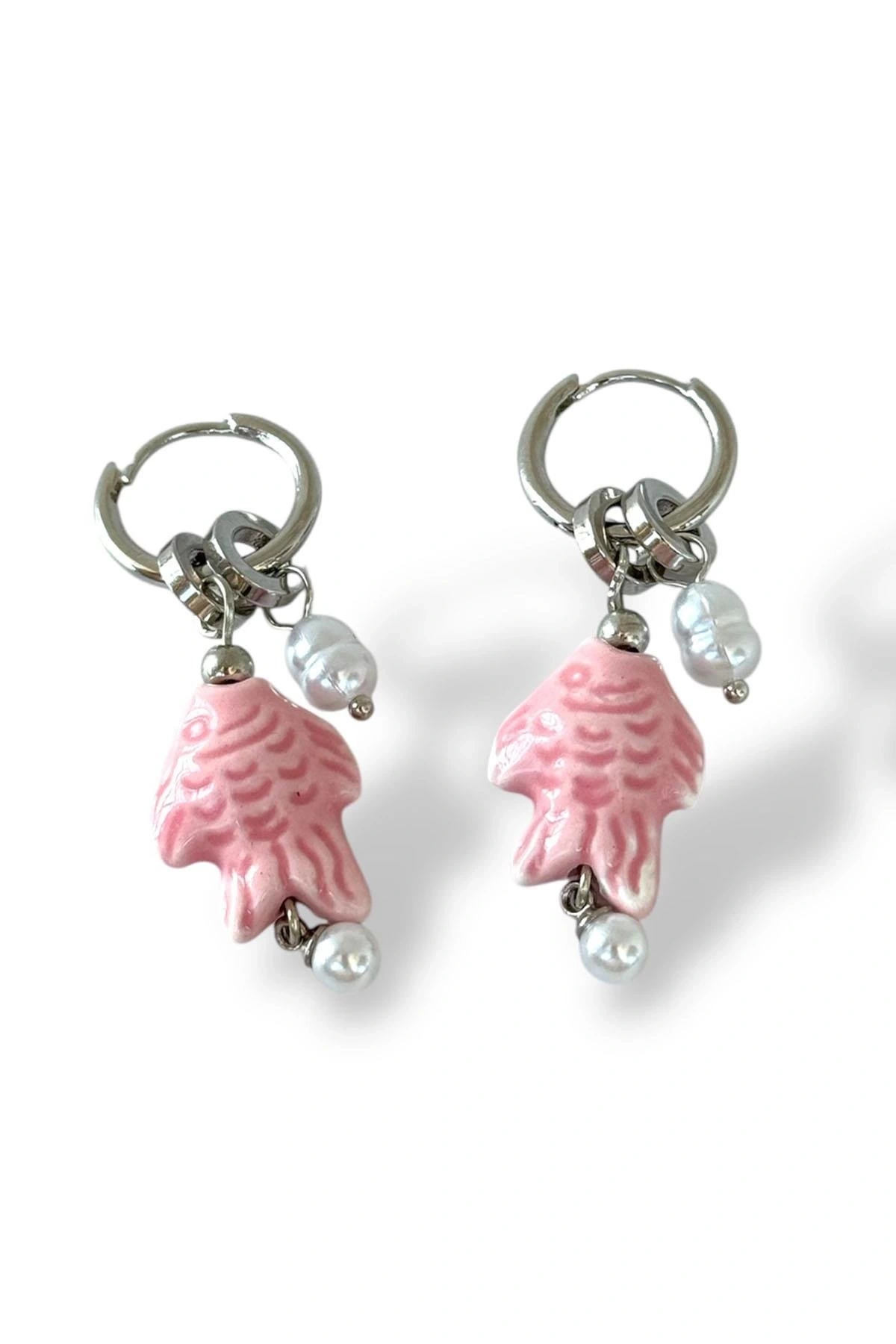 Gümüş Renk Balık Figürlü İnci Detaylı Küpe (Çift)