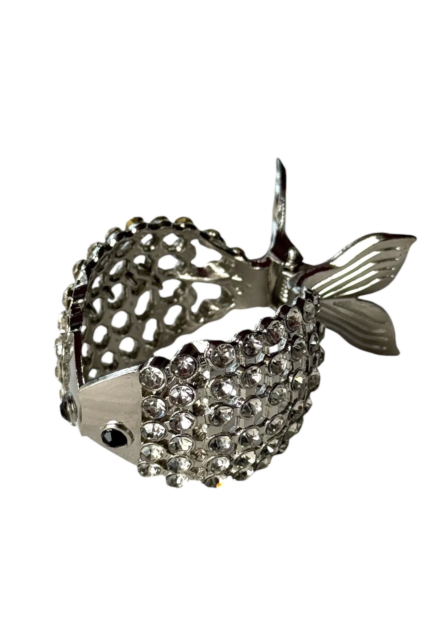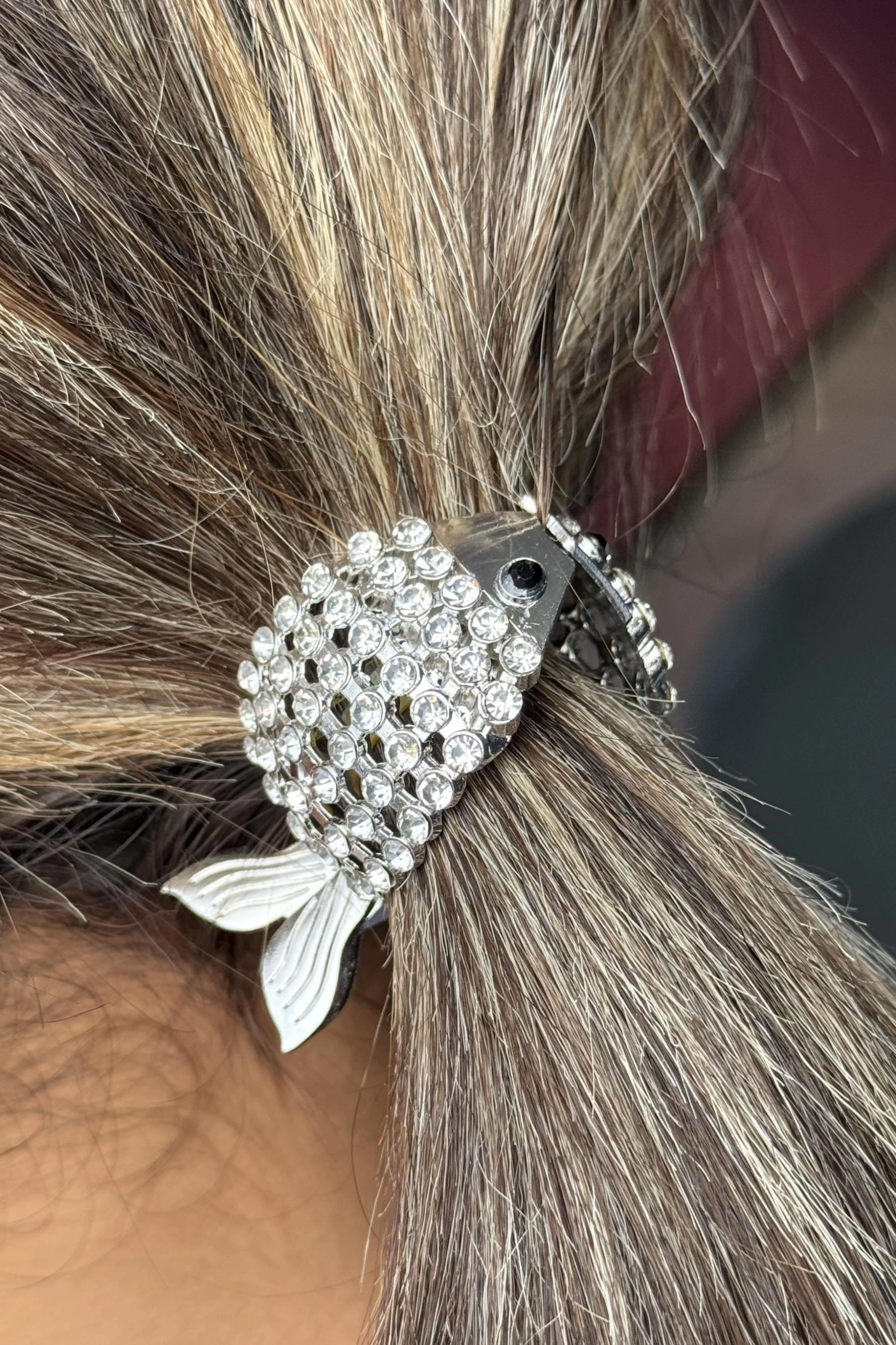 Gümüş Renk Balık Figürlü Taş Detaylı Mandal Toka