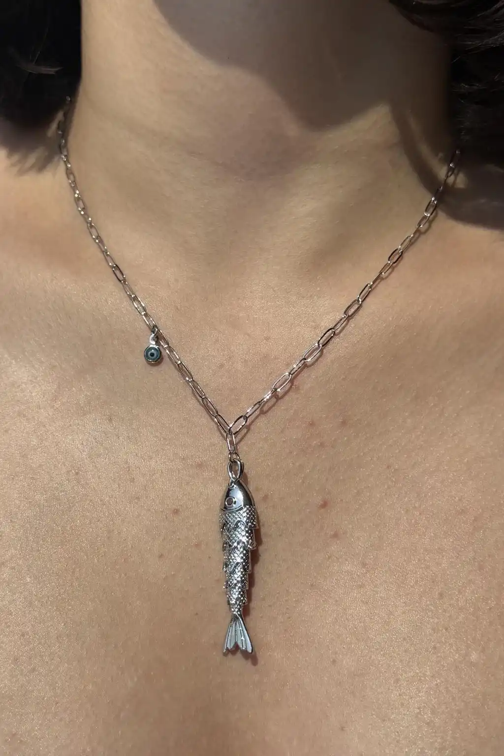 Mavi Renk Boncuklu Yengeç Detaylı Tasarım Kolye
