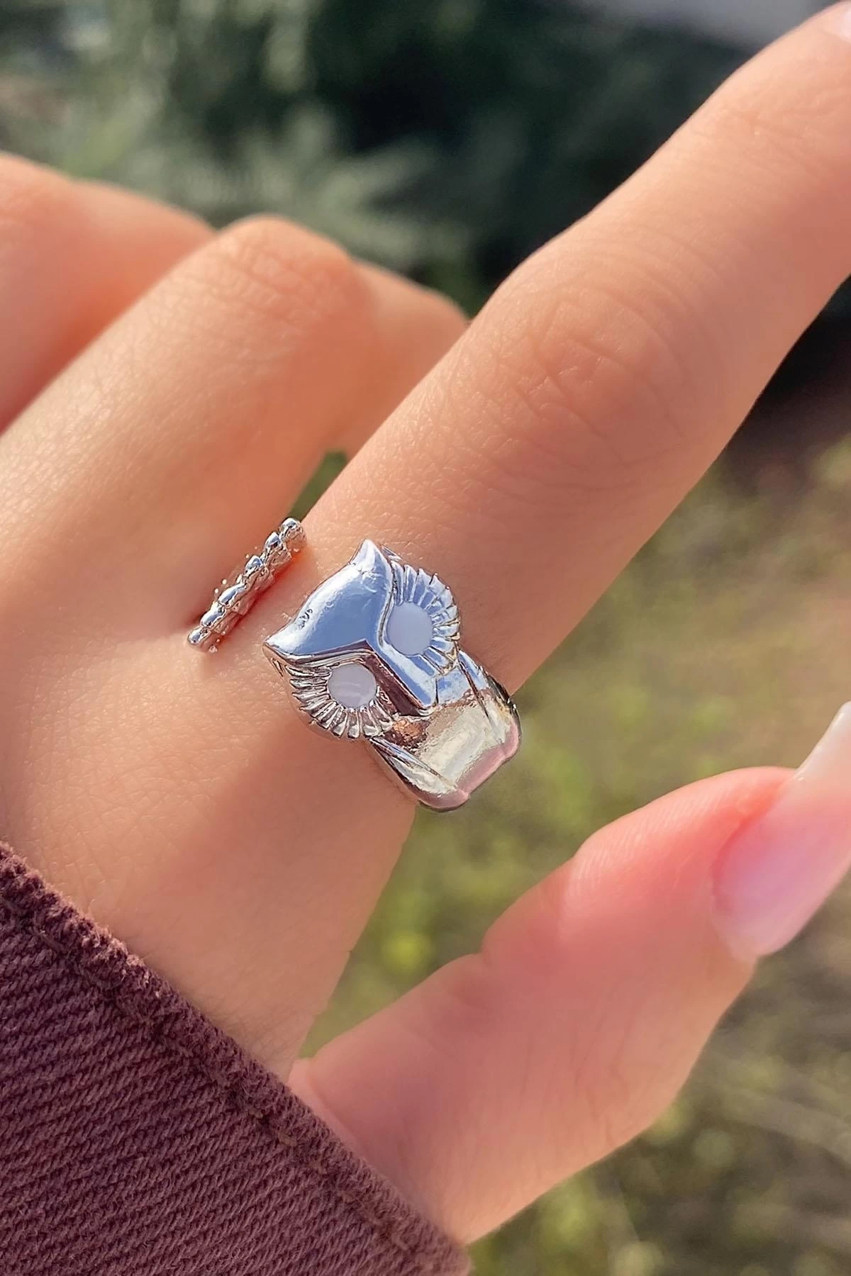 Gümüş Renk Taş Detaylı Ayarlanabilir Yüzük