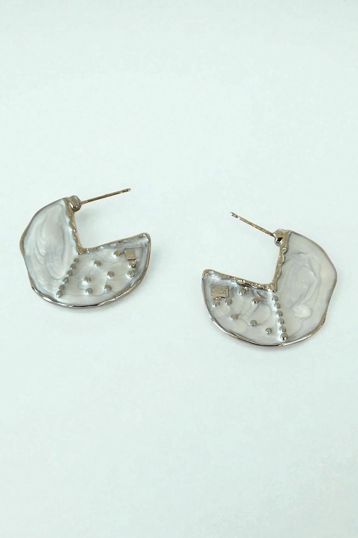 Gümüş Renk Beyaz Mineli Küpe (Çift)