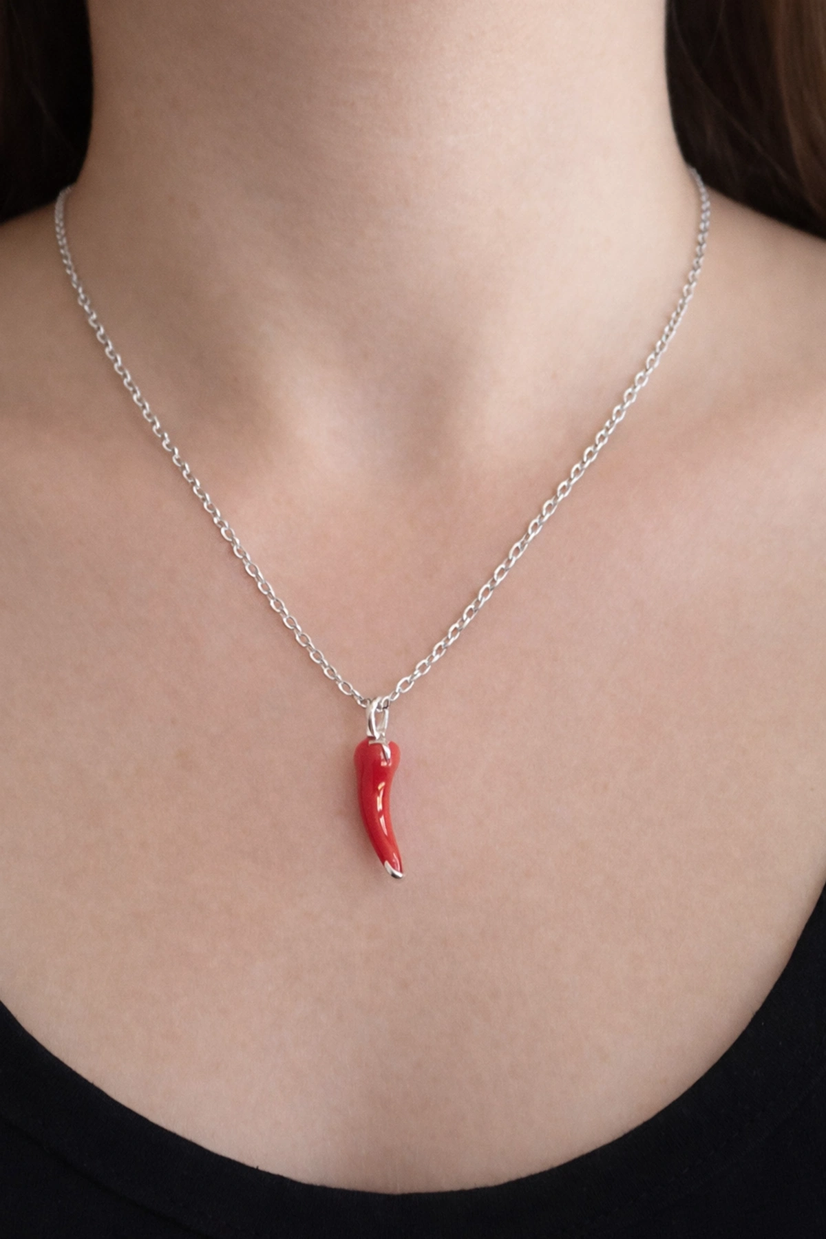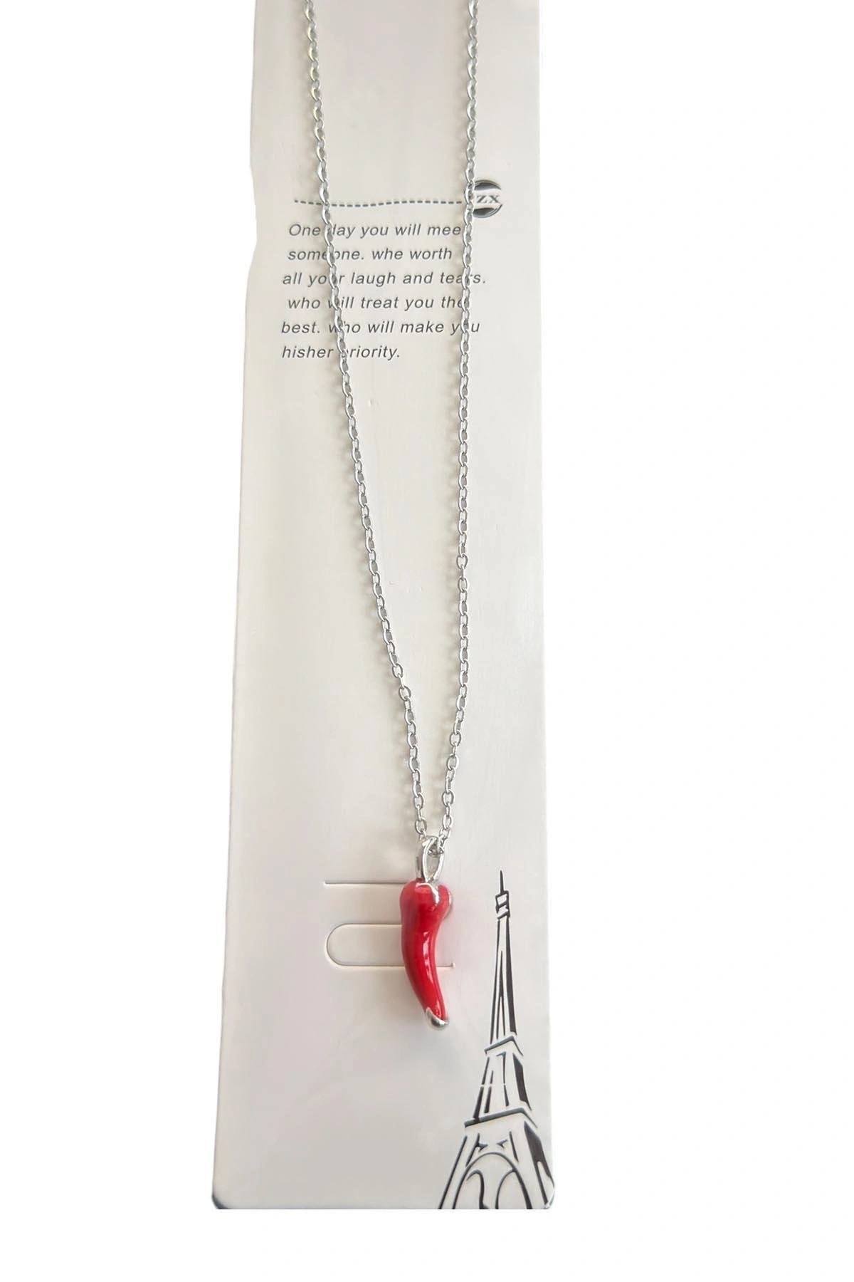 Gümüş Renk Biber Figürlü Çelik Şans Kolyesi