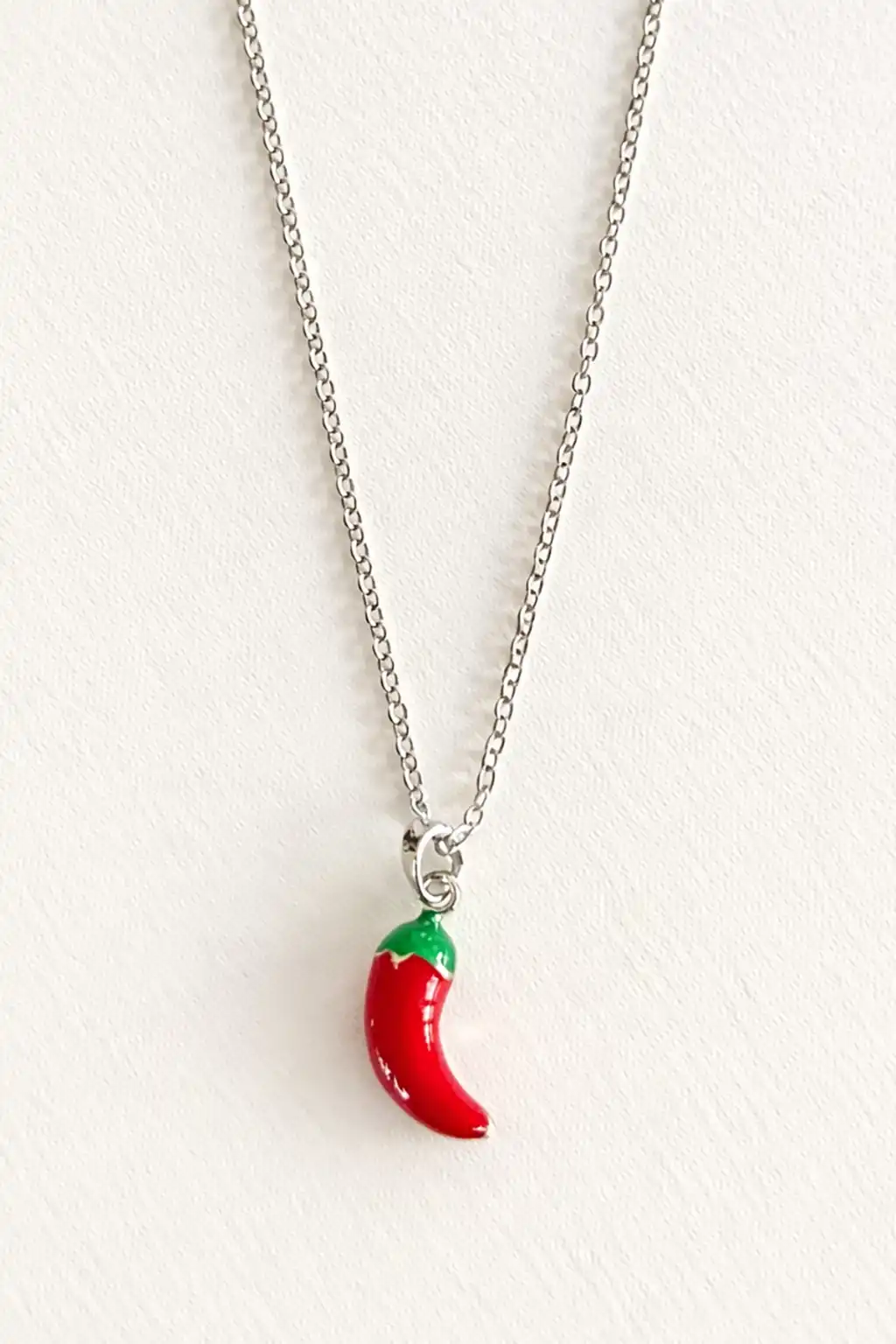 Gümüş Renk Biber Figürlü Çelik Şans Kolyesi