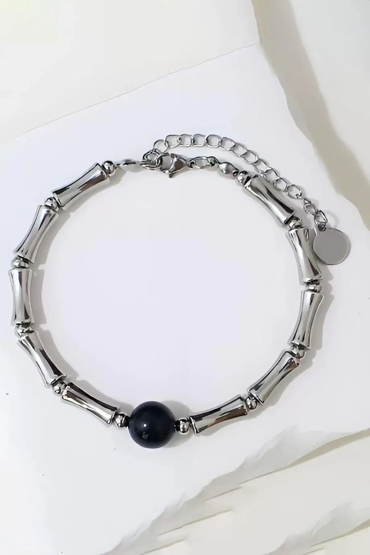 Gümüş Renk Boncuk Detaylı Çelik Erkek Bileklik