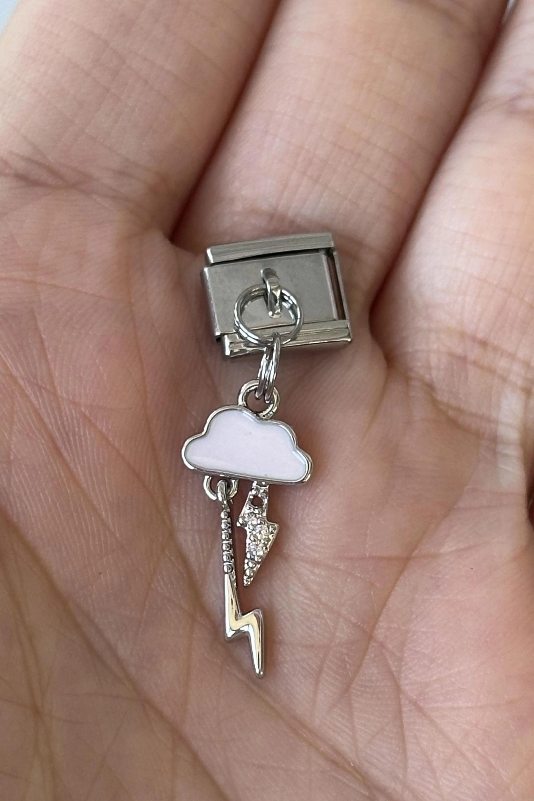 Gümüş Renk Bulut Ve Şimşek Figürlü Çelik Nomination Charm (Tek)