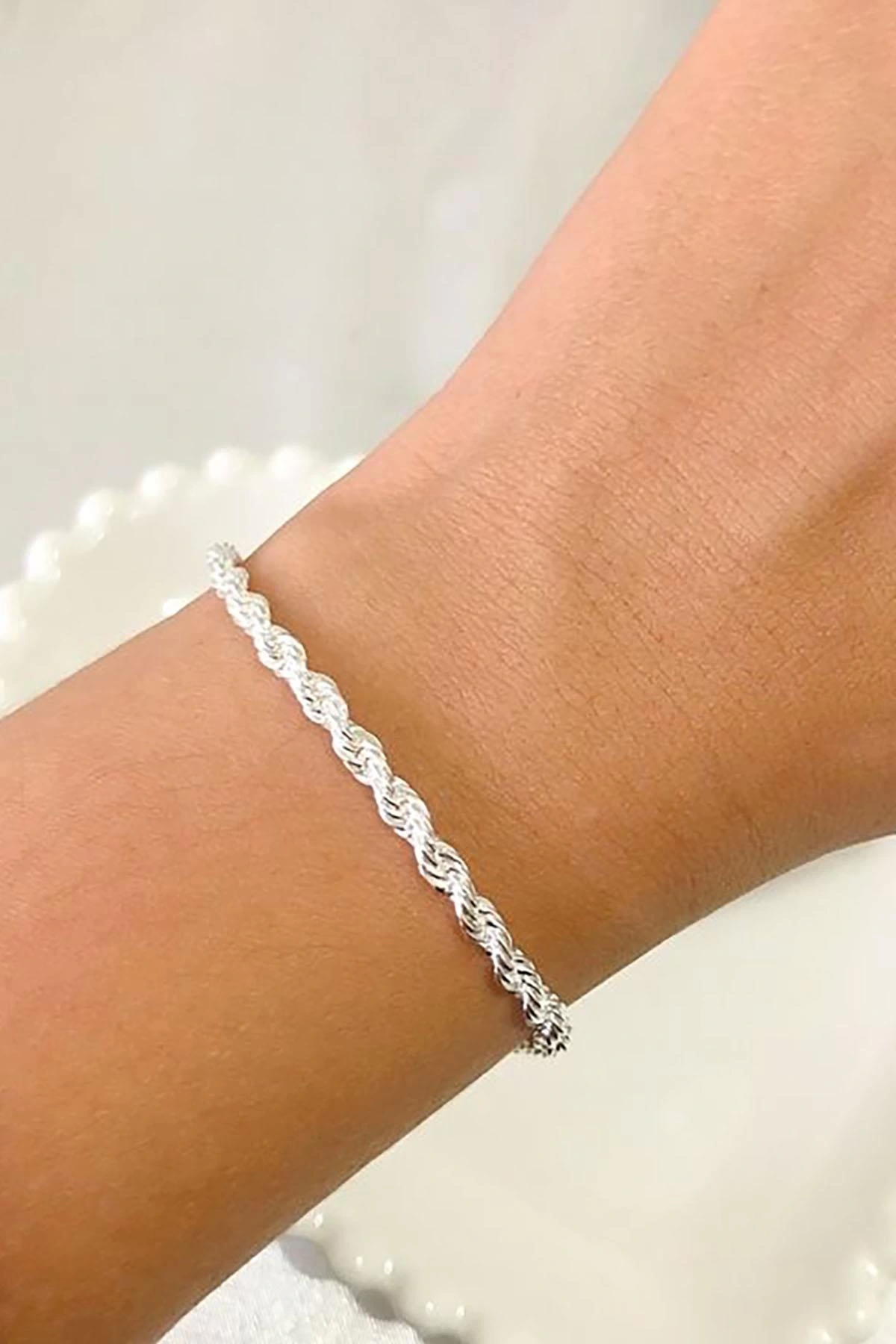 Gümüş Renk Burgu Detaylı Çelik Bileklik