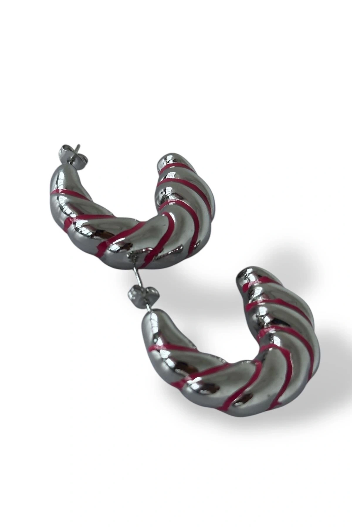 Gümüş Renk Burgu Detaylı Çelik Küpe (Çift)