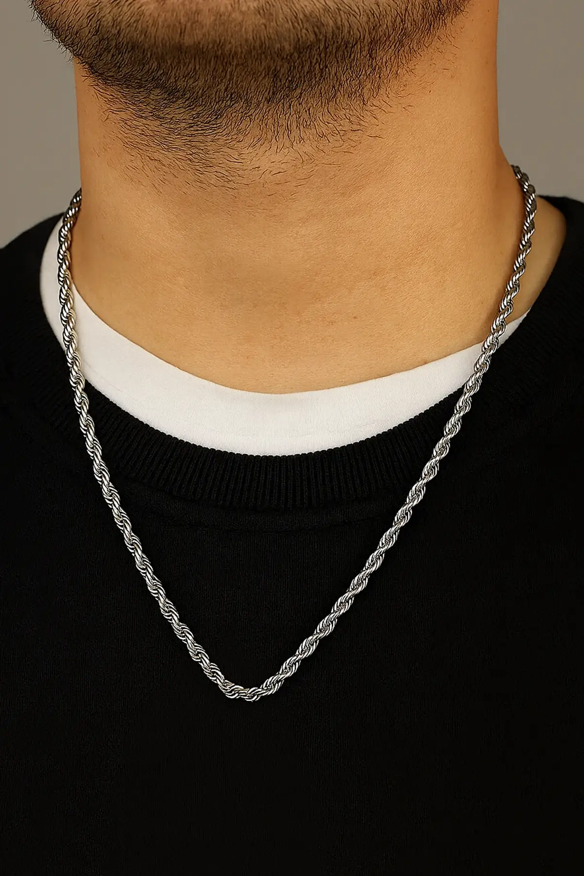 Gümüş Renk Erkek Zincir Çelik Kolye (50cm)