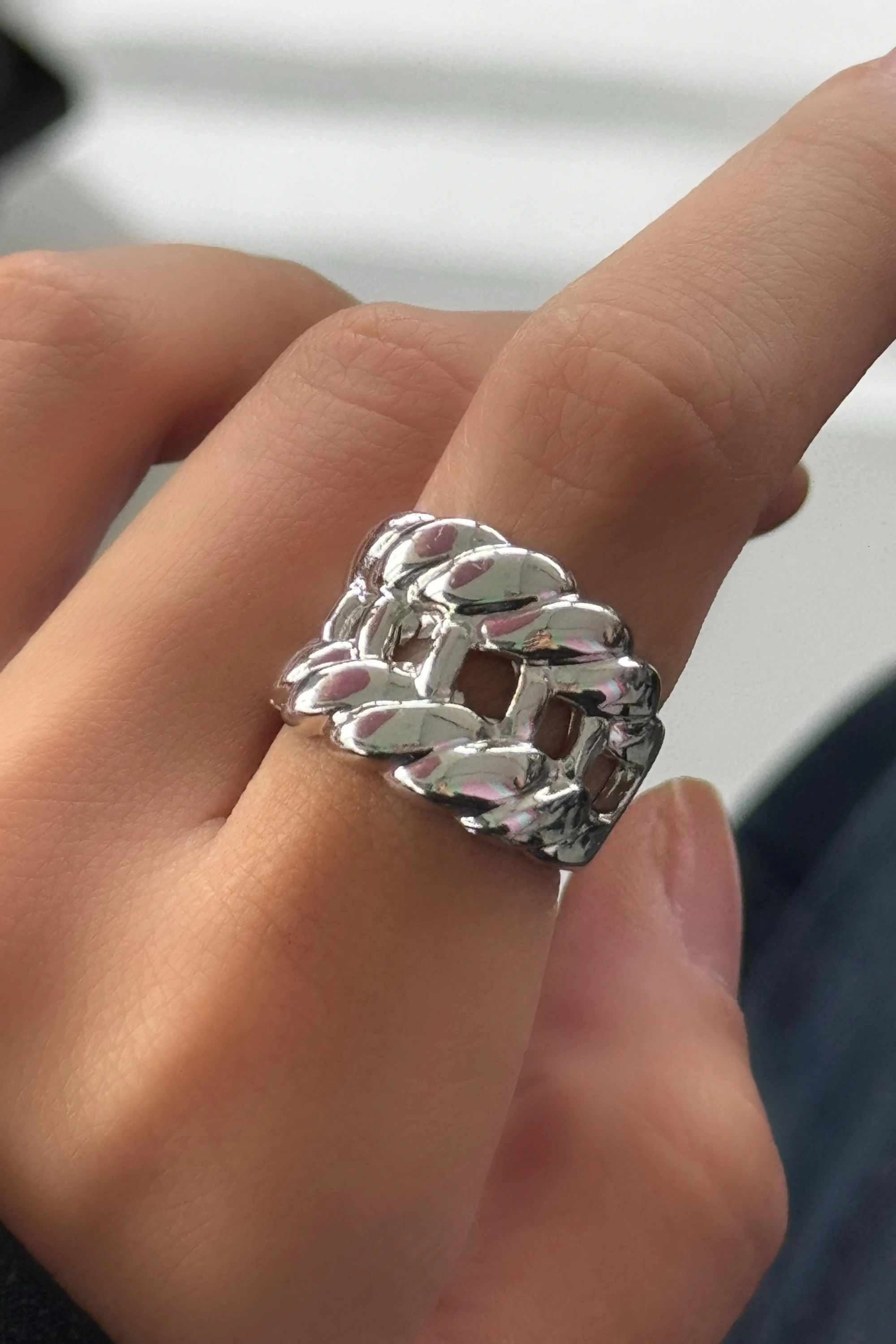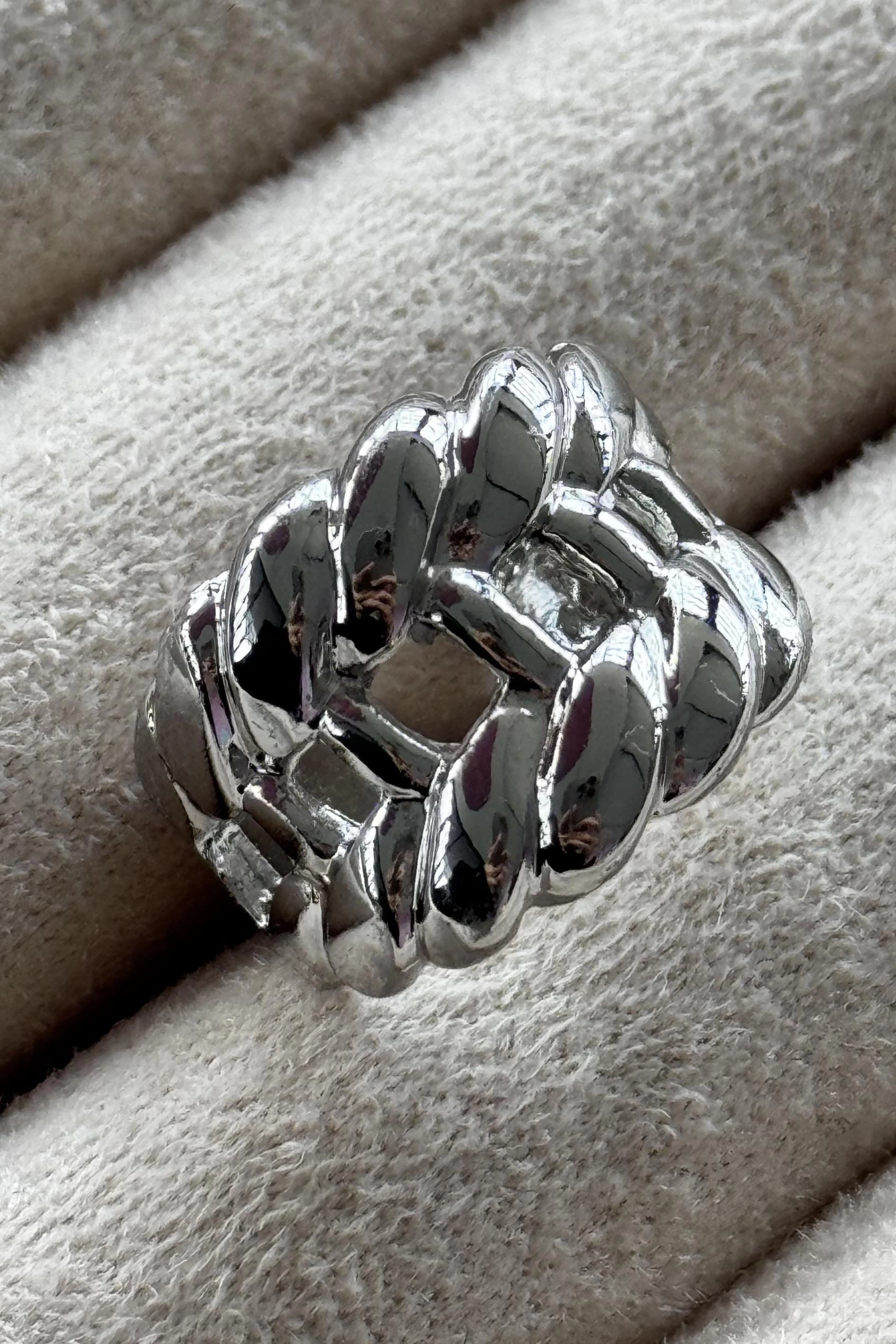 Gümüş Renk Burgu Detaylı Metal Ayarlanabilir Yüzük