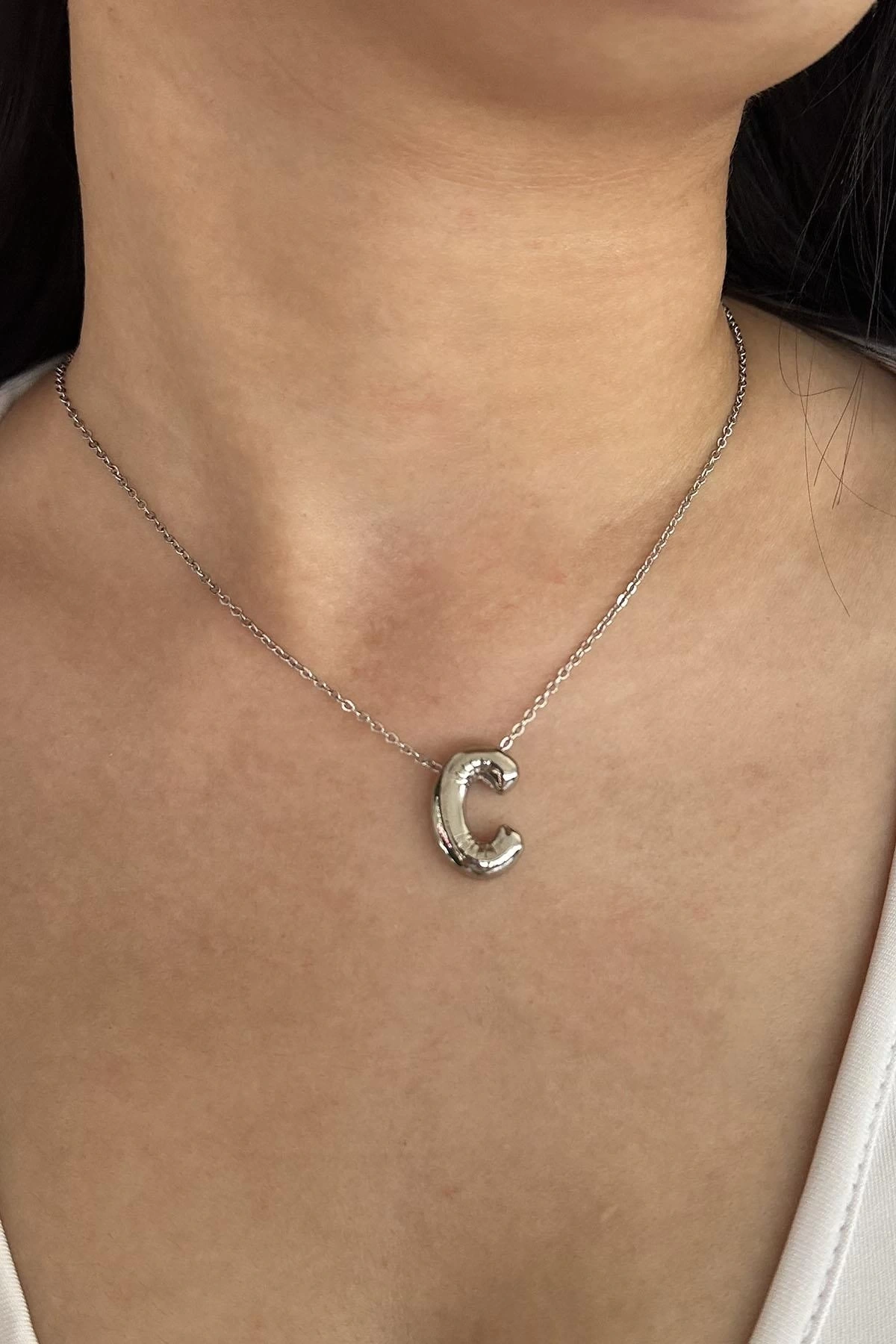 Gümüş Renk C Harf Balon Kolye