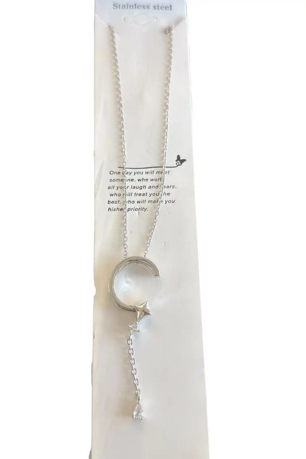 Gümüş Renk Taş Detaylı Çelik Kolye