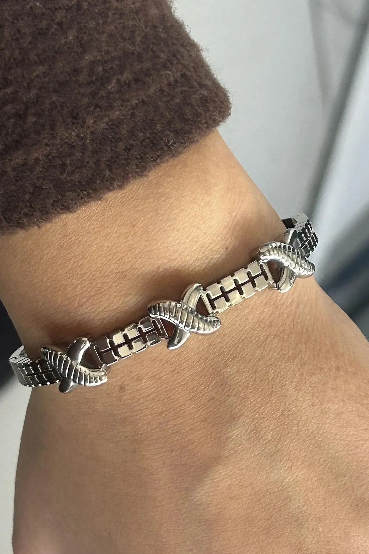 Gümüş Renk Çarpı Figürlü Çelik Kelepçe Bileklik