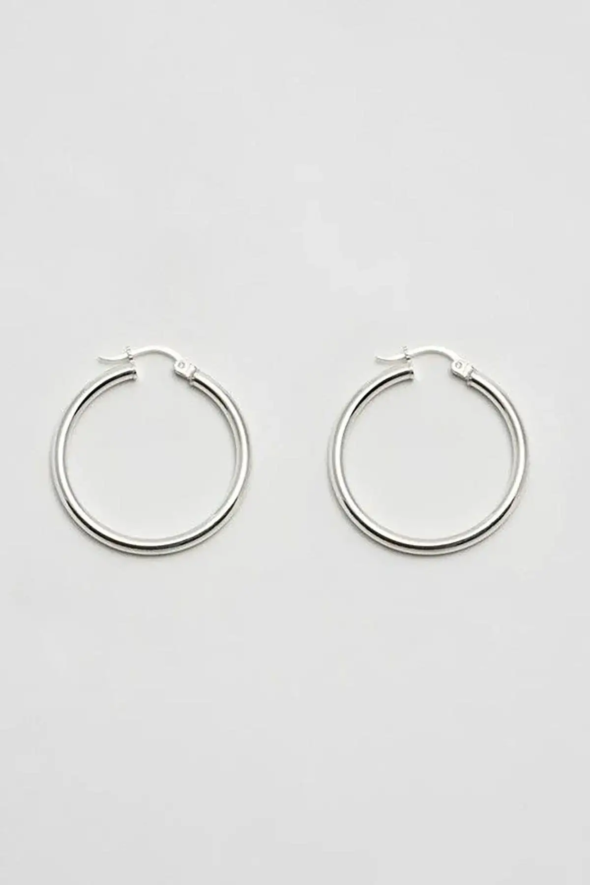 Gümüş Renk Çelik Halka Küpe 25Mm (Çift)