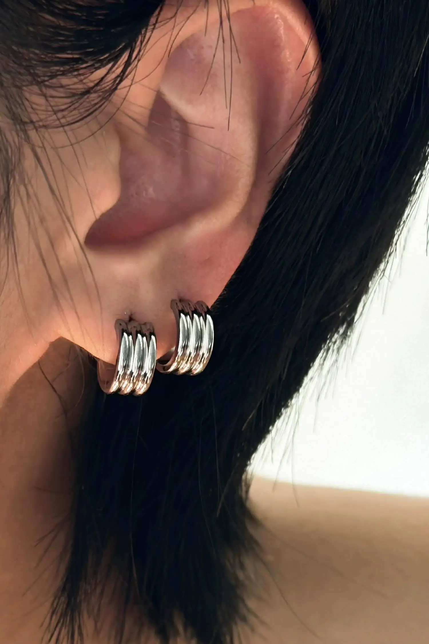 “Günlük stilinize modern bir dokunuş… Çelik küpelerimizle hem zarif hem de kalıcı ışıltı.”