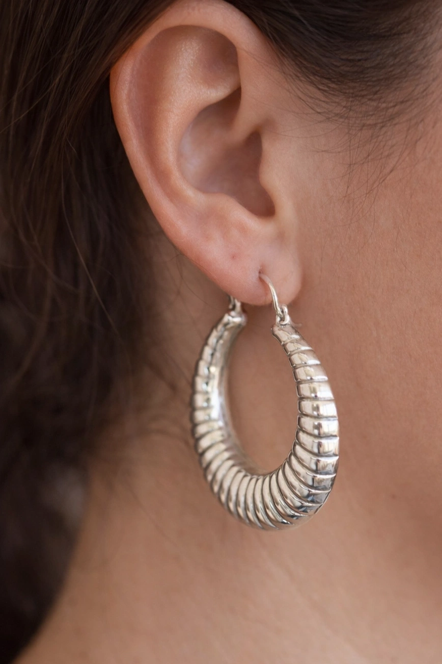 Gümüş Renk Çelik Halka Küpe (Çift)