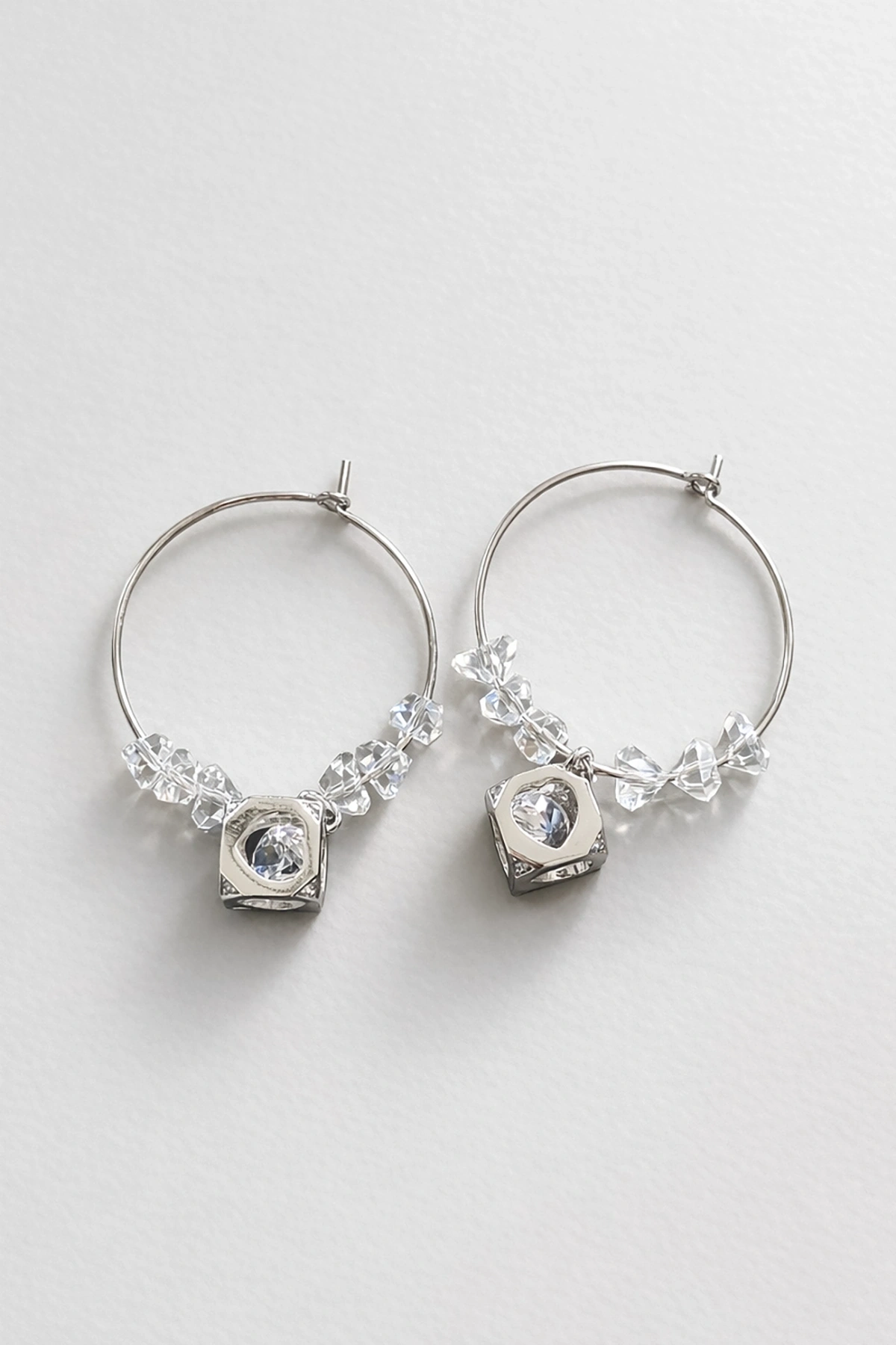 Gümüş Renk Taş Detaylı Çelik Xupıng VİP Küpe