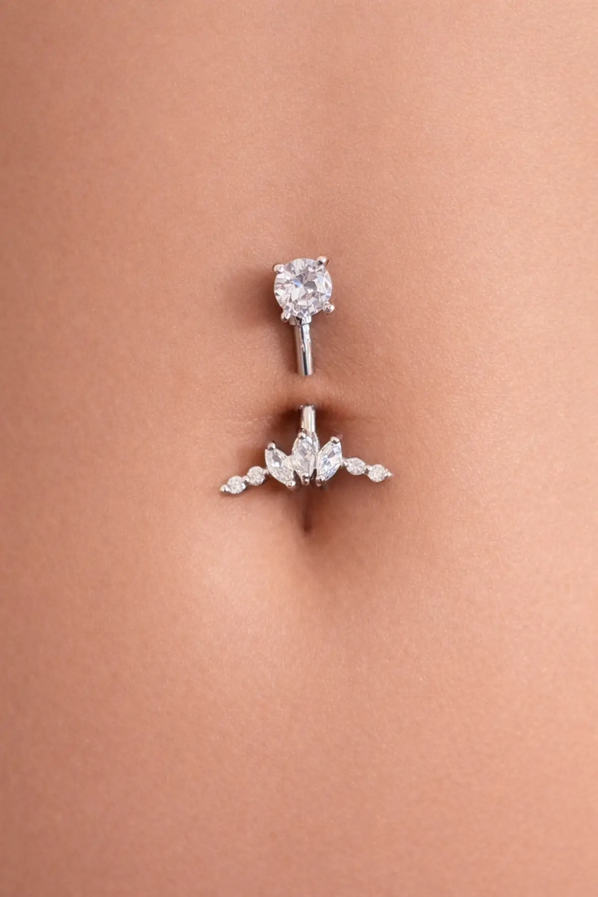 Gümüş Renk Taşlı Cerrahi Çelik Göbek Piercingi