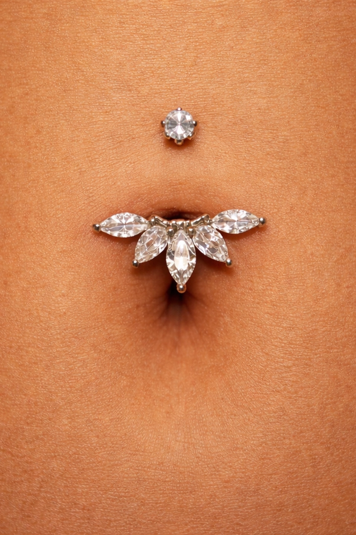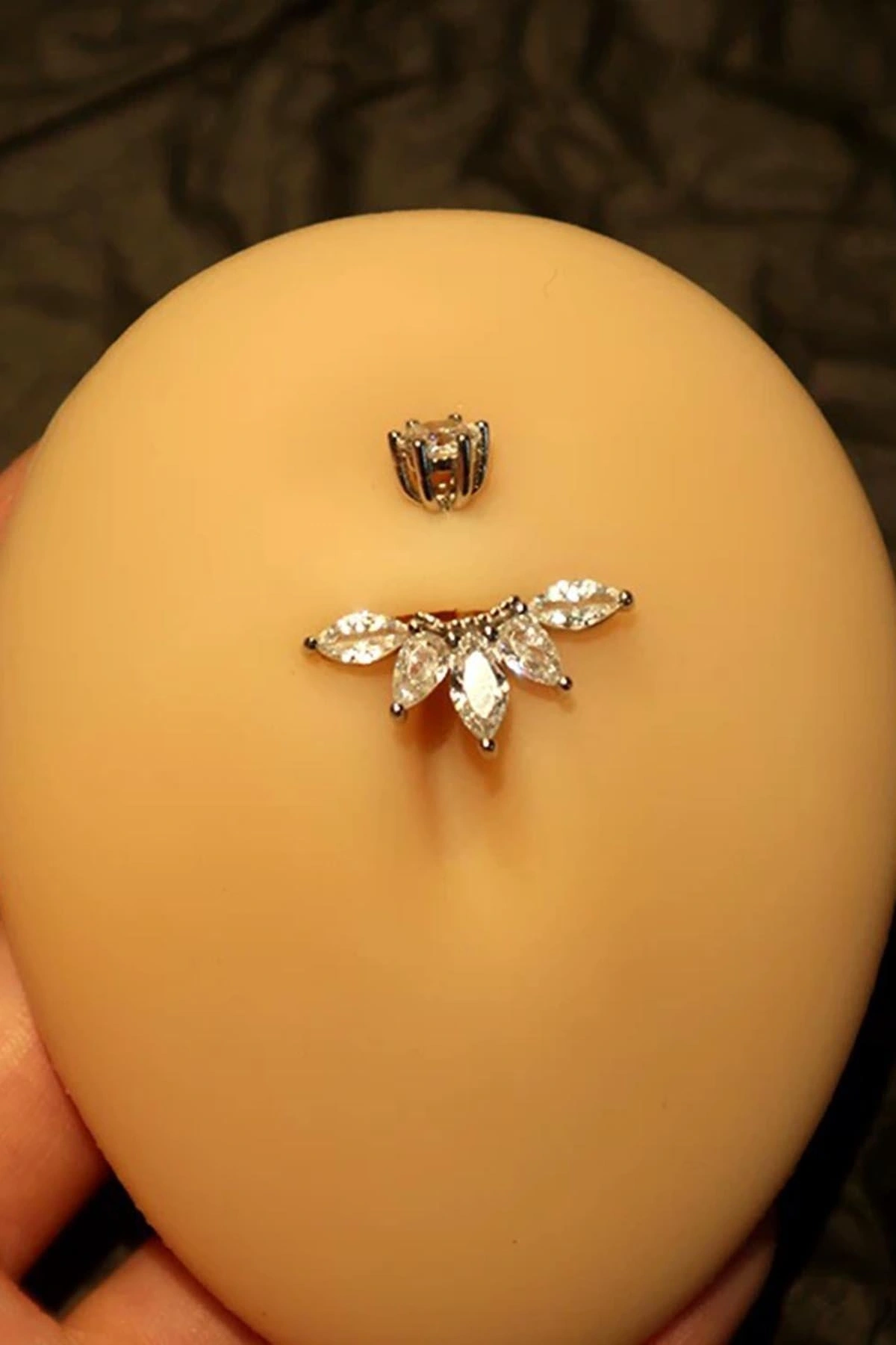 Gümüş Renk Cerrahi Çelik Taşlı Göbek Piercing