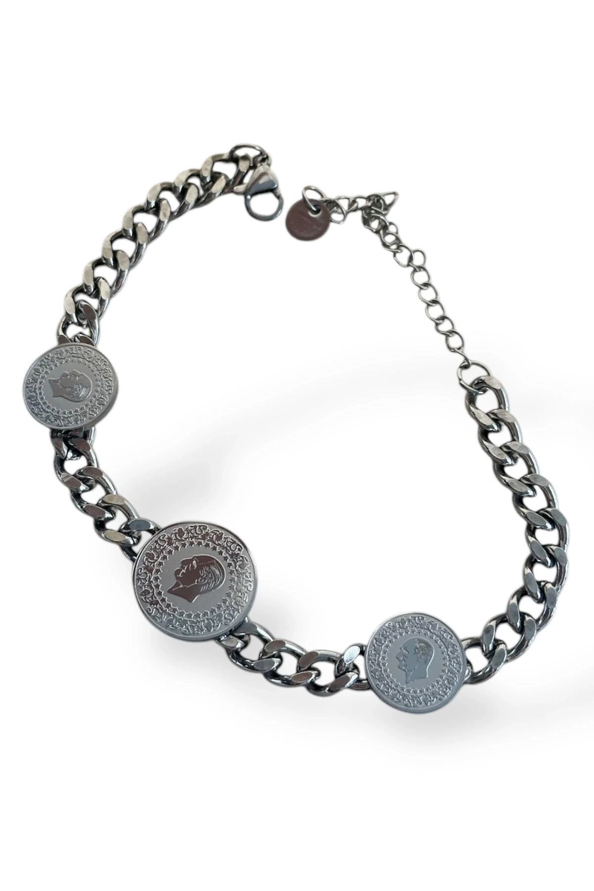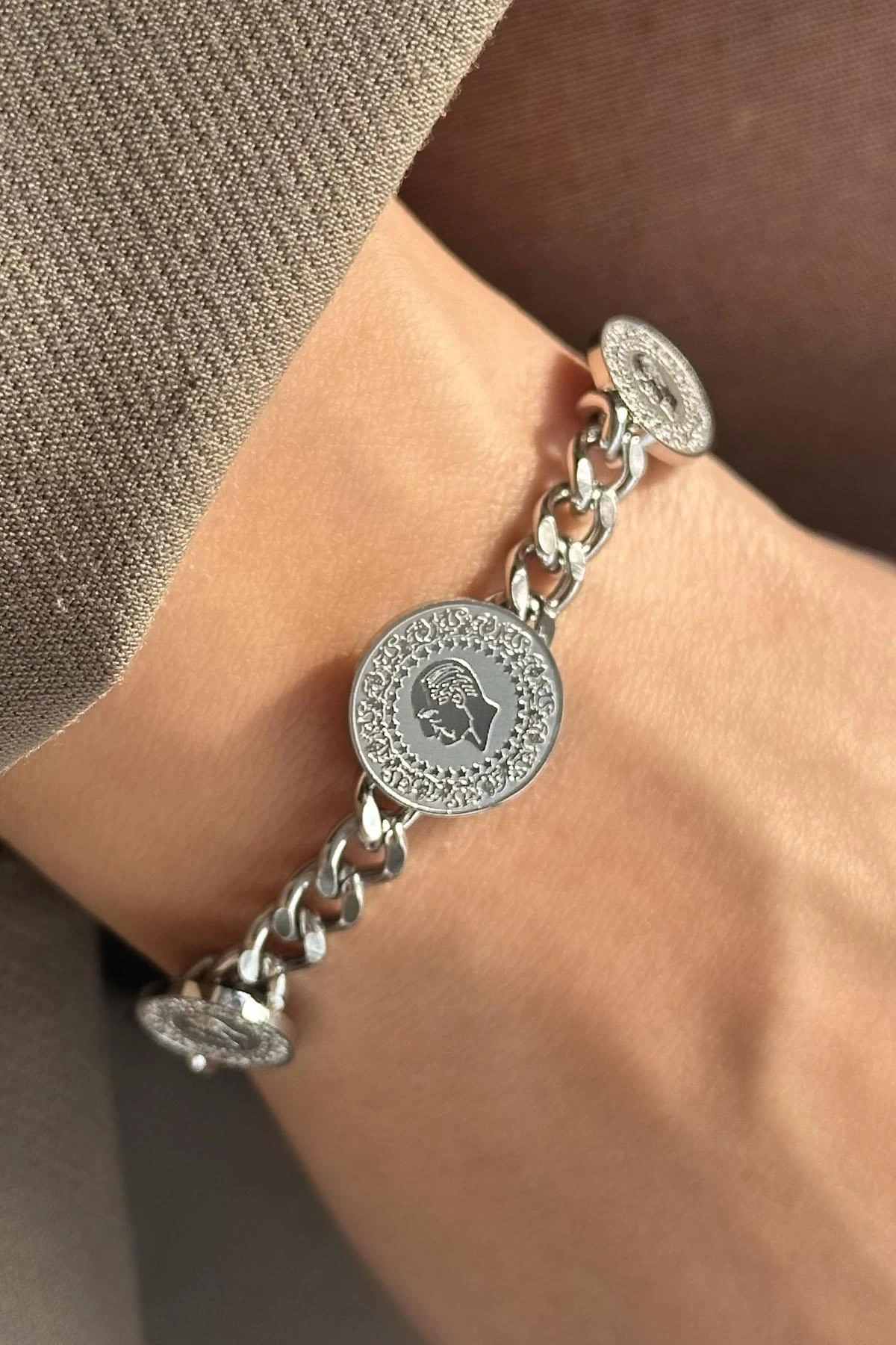 Gümüş Renk Çeyrek Figürlü Çelik Bileklik