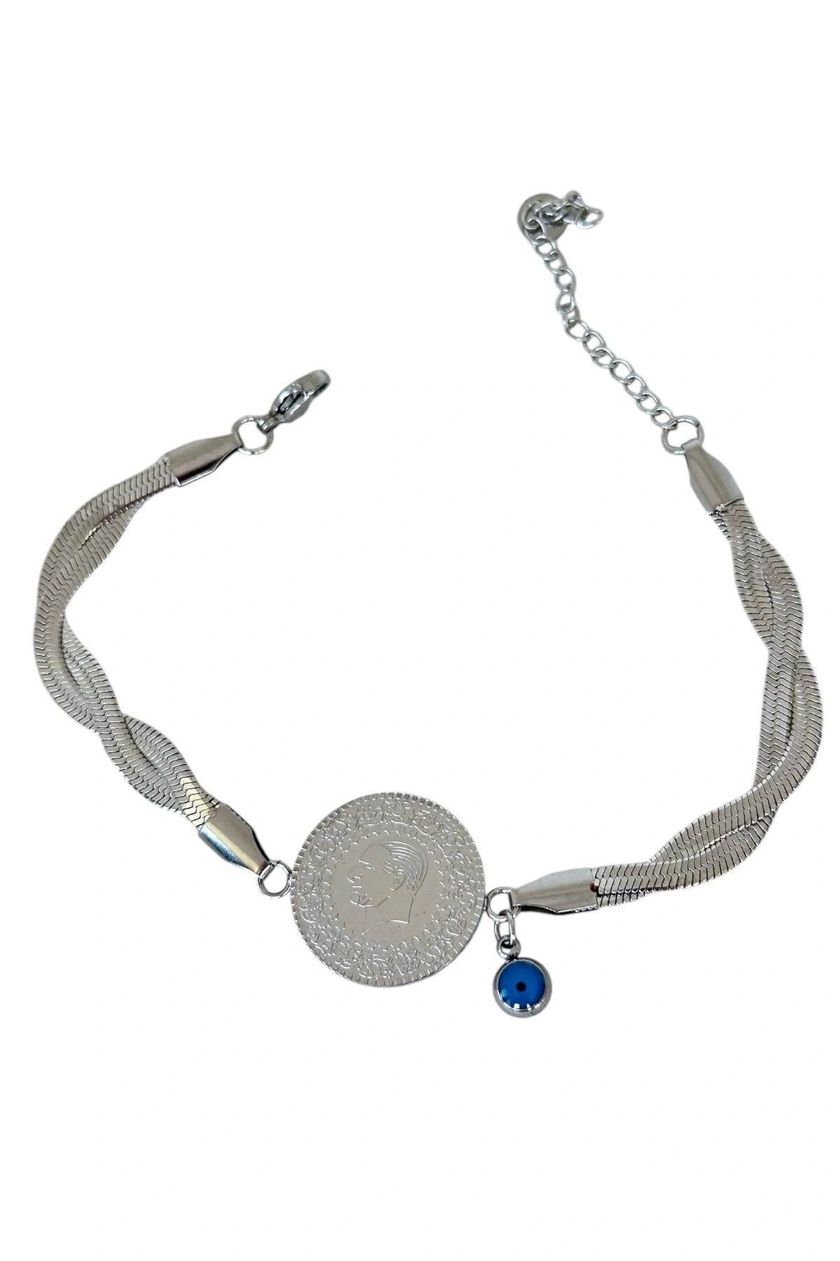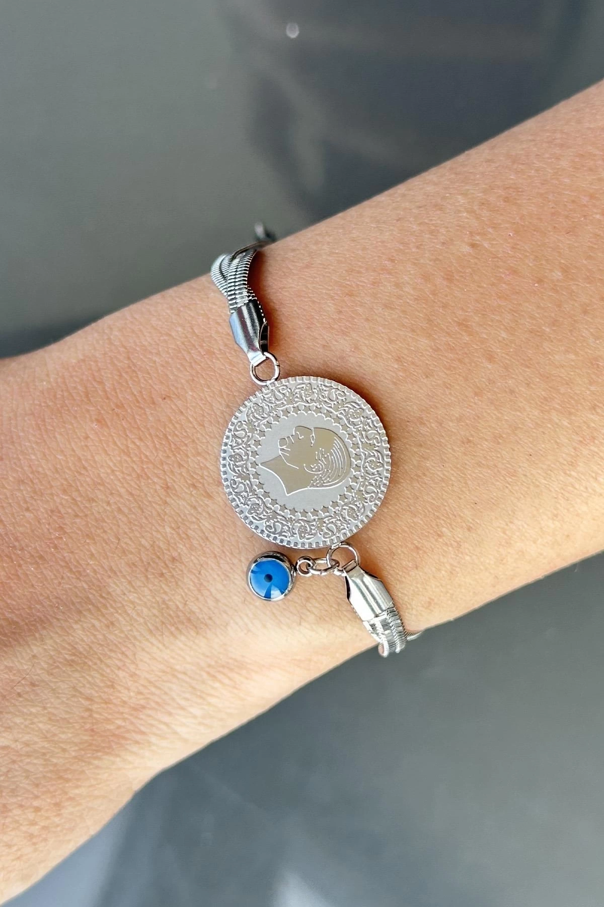 Gümüş Renk Çeyrek Figürlü Çelik Bileklik