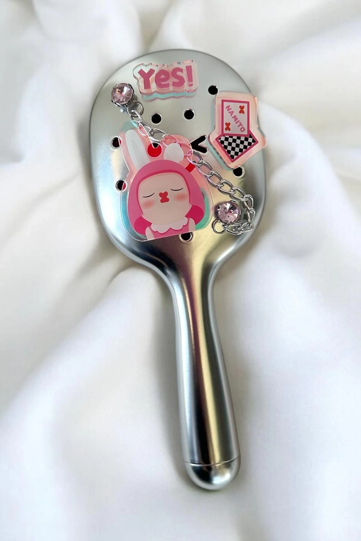 Gümüş Renk Charmlı Saç Tarama Fırçası/ Tarak