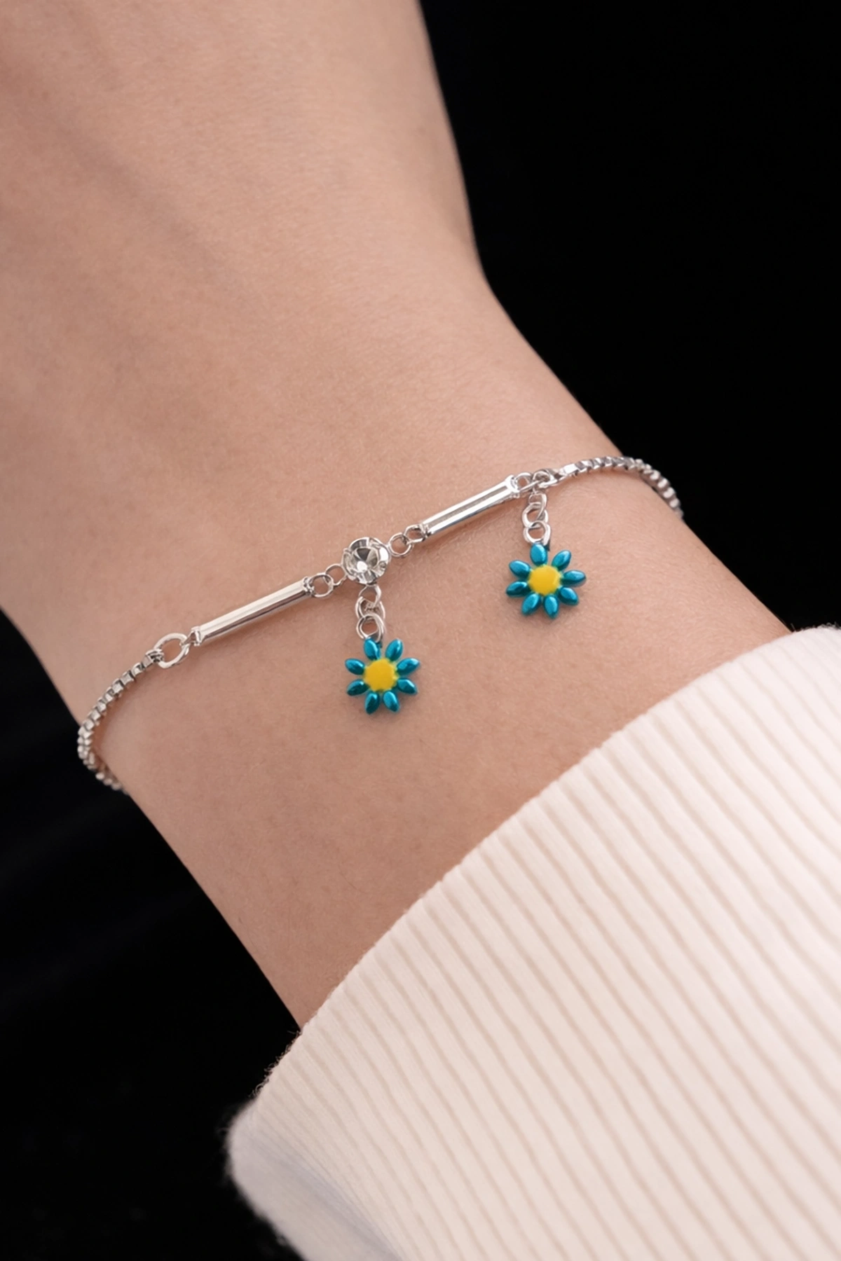 Gümüş Renk Çiçek Figürlü Çelik Bileklik