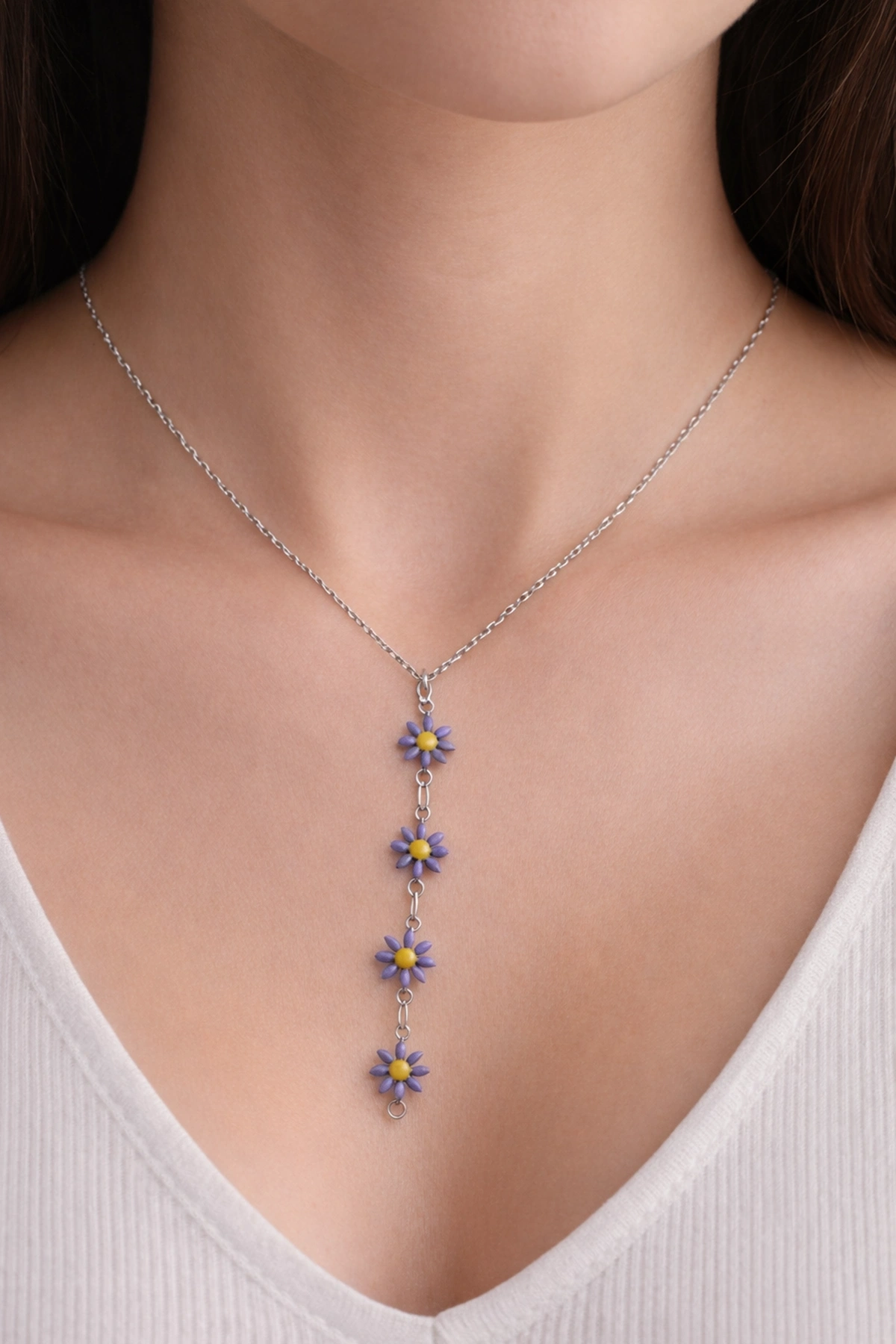 Gümüş Renk Çiçek Figürlü Çelik Kolye