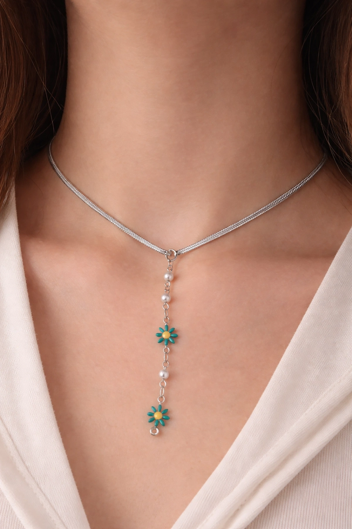Gümüş Renk Çiçek Figürlü Çelik Kolye
