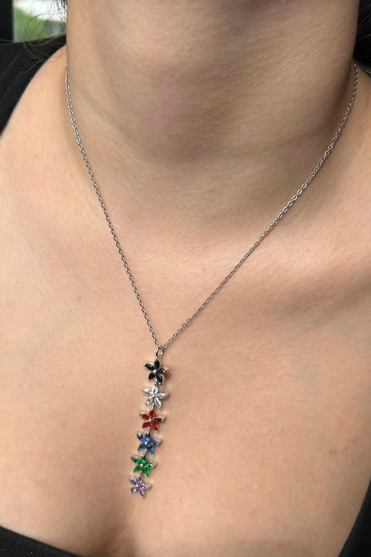 Gümüş Renk Çiçek Figürlü Çelik Kolye
