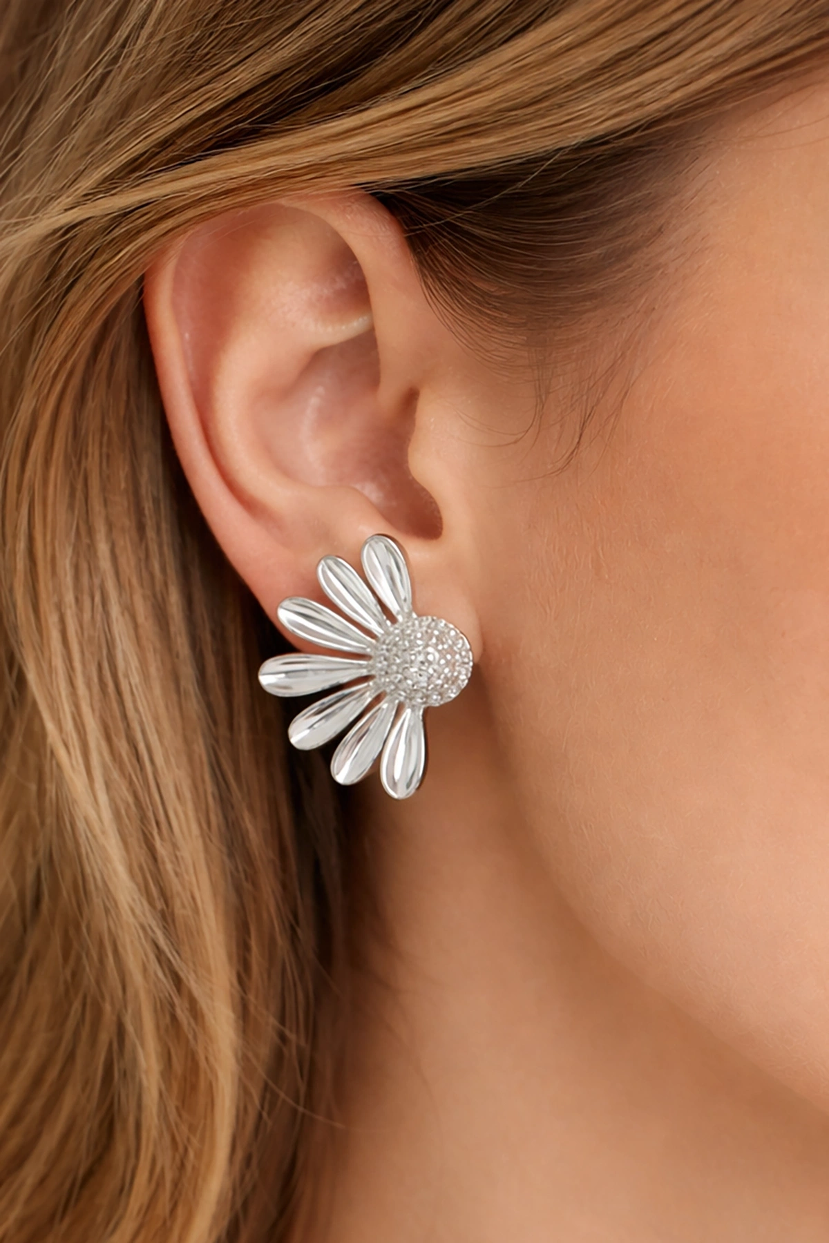 Gümüş Renk Çiçek Figürlü Küpe (Çift)