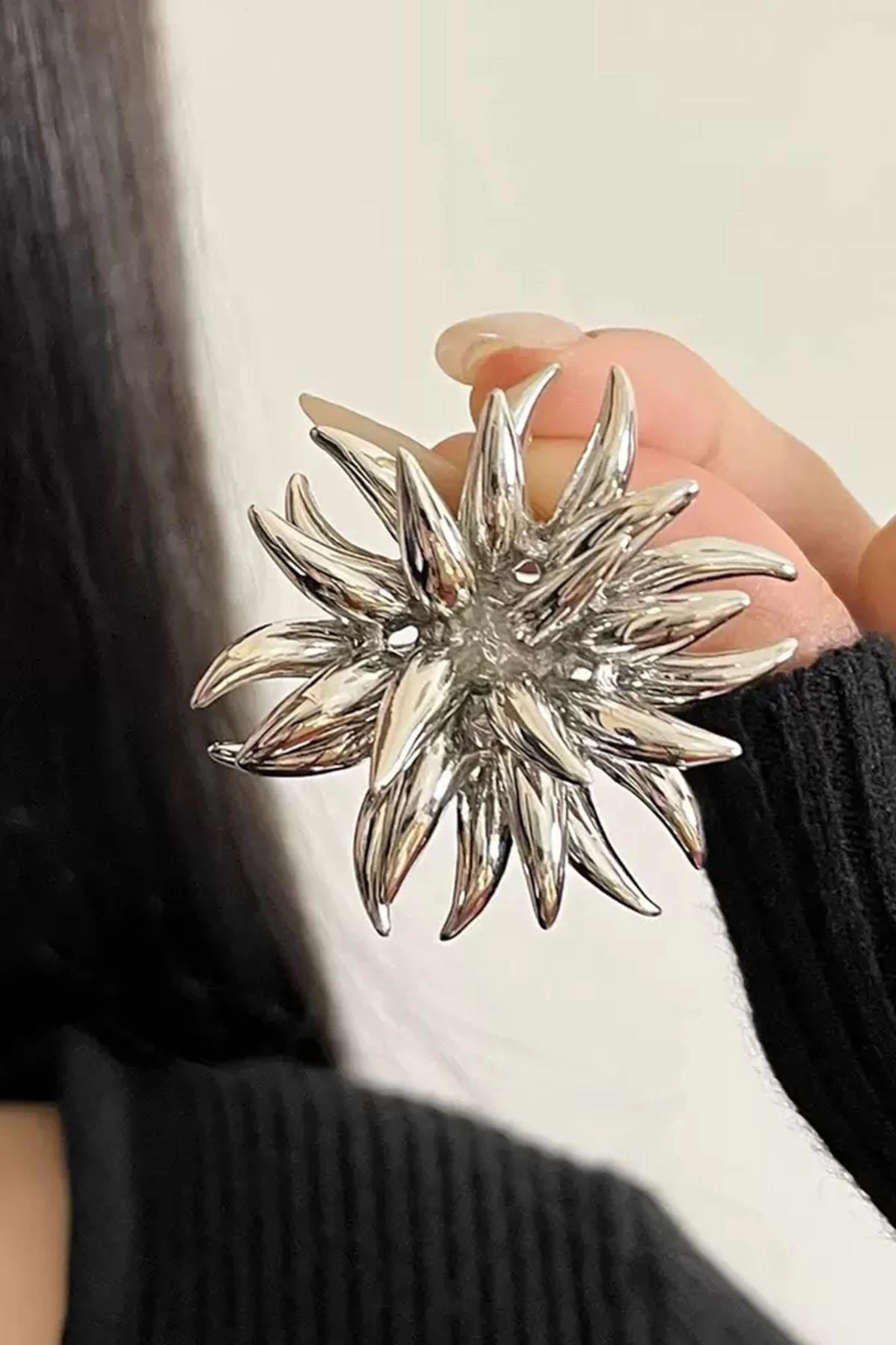 Gümüş Renk Çiçek Figürlü Küpe (Çift)