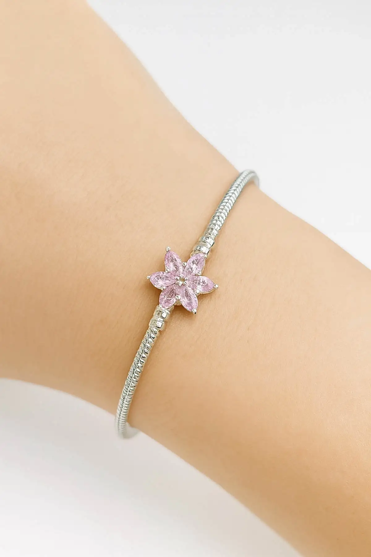 Gümüş Renk Çiçek Figürlü Pandora Bileklik