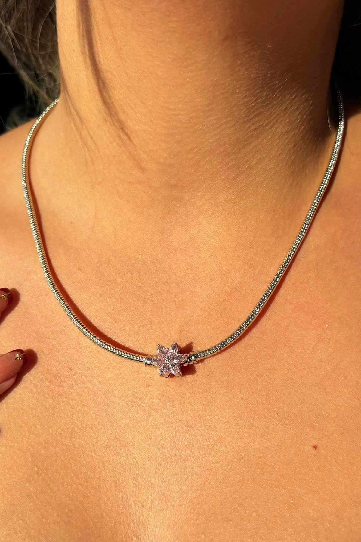 Gümüş Renk Çiçek Figürlü Kolye
