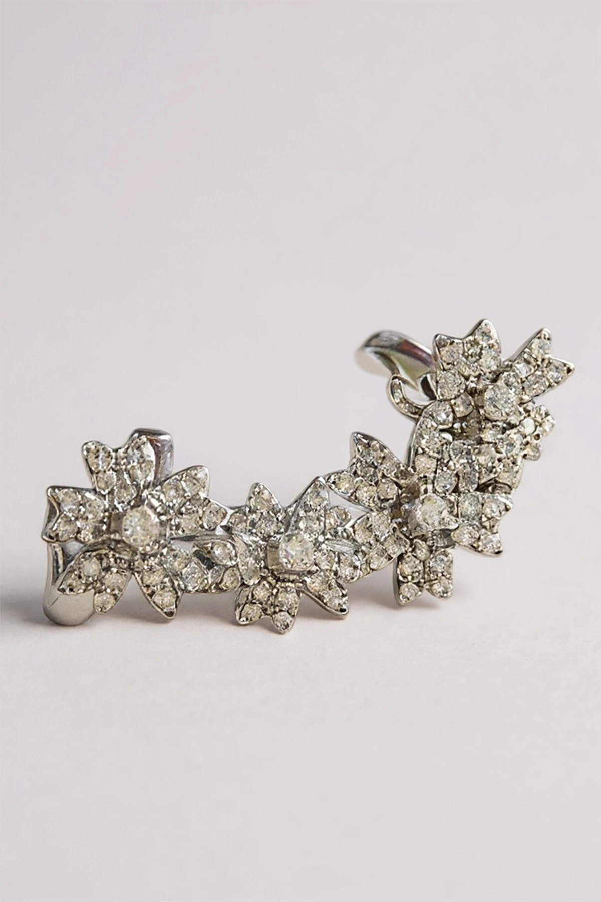 Gümüş Renk Çiçek Figürlü Taş Detaylı Ear Cuff (Tek)
