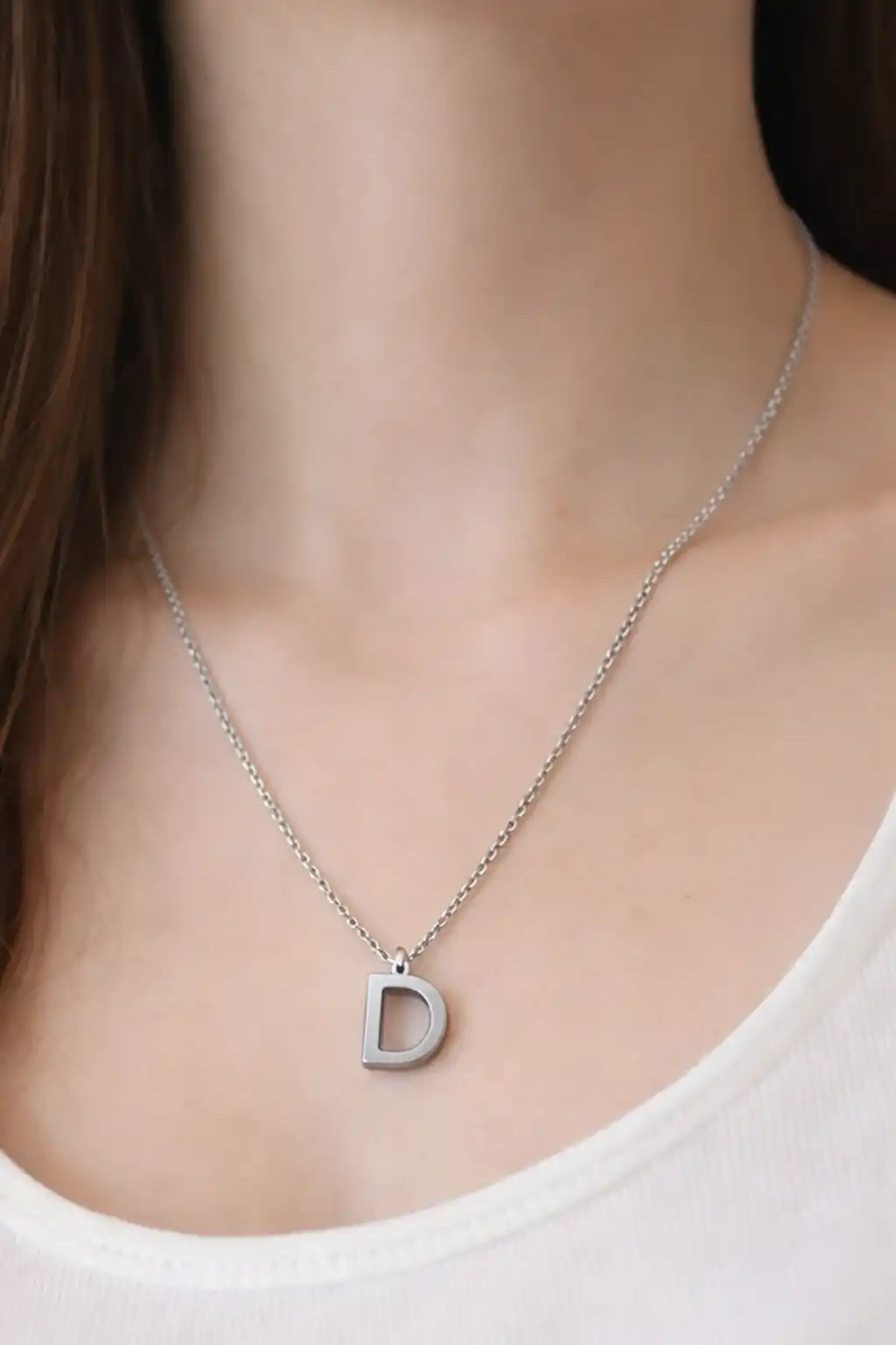 Gümüş Renk D Harf Çelik Kolye