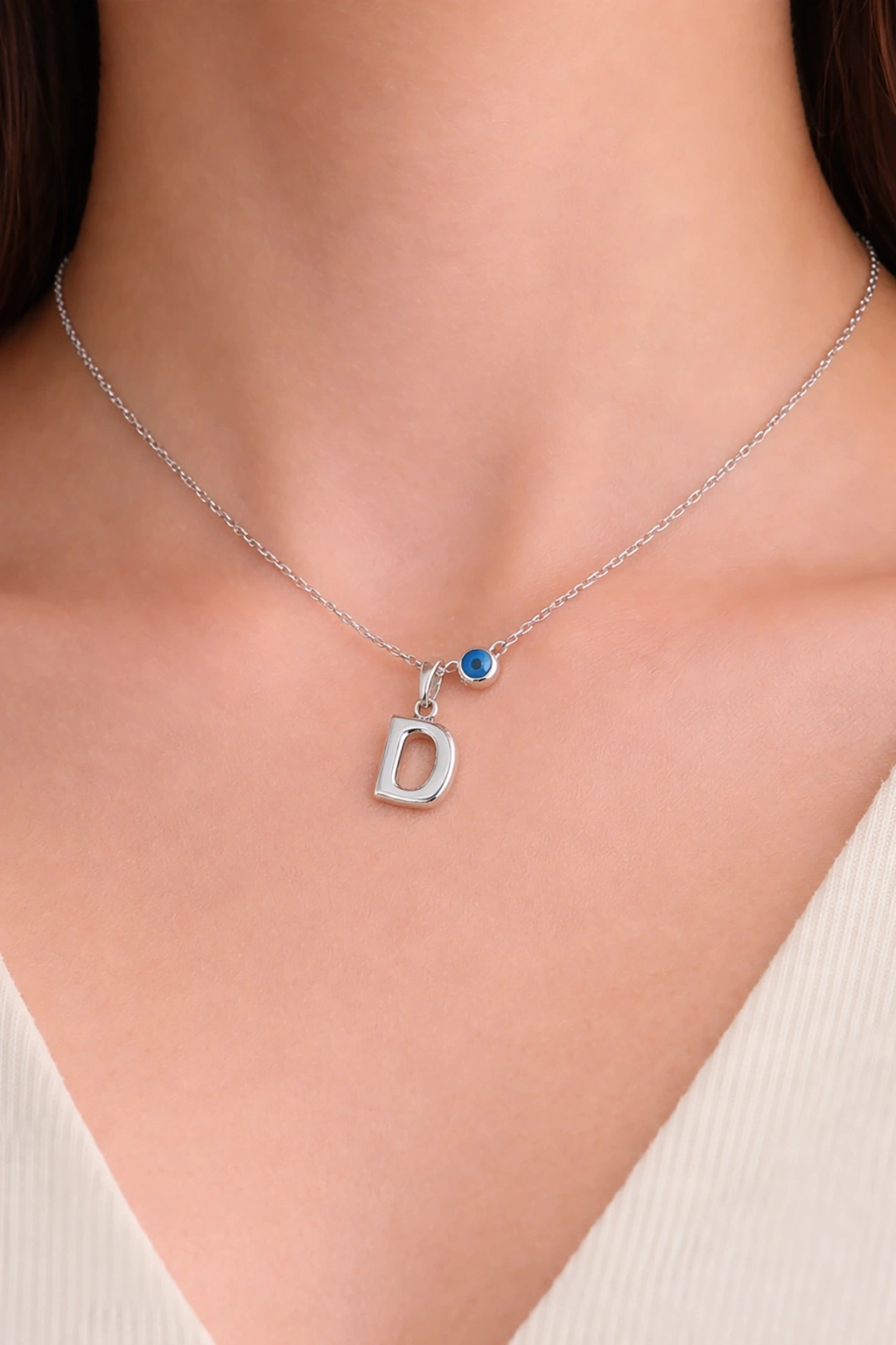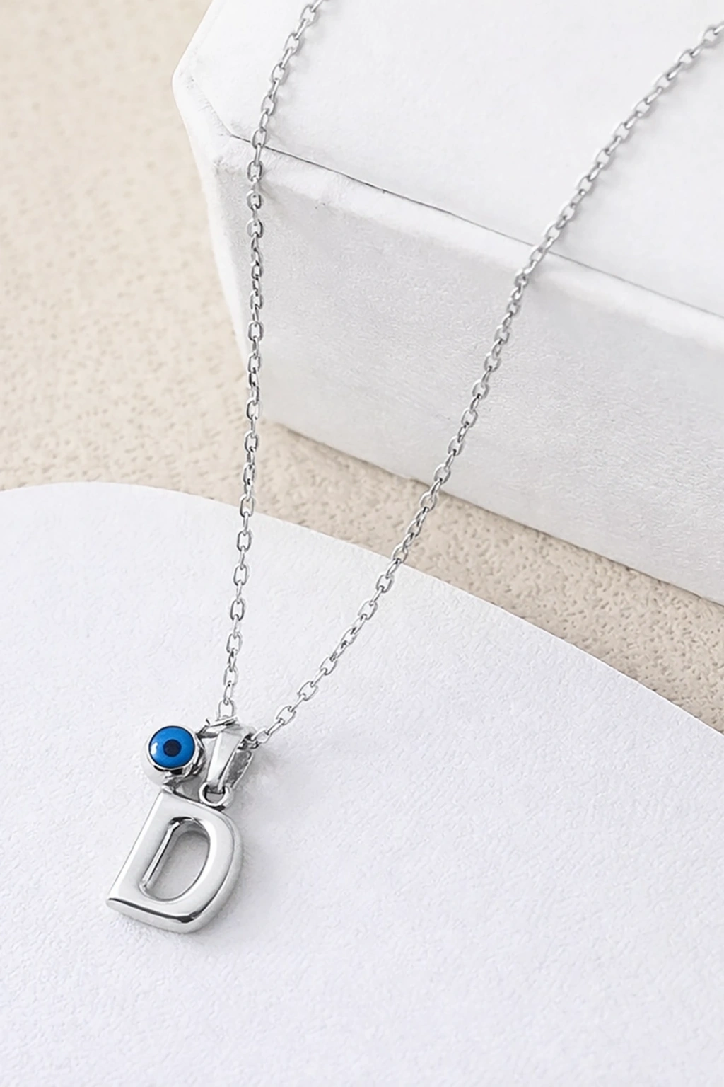 Gümüş Renk D Harf Çelik Kolye