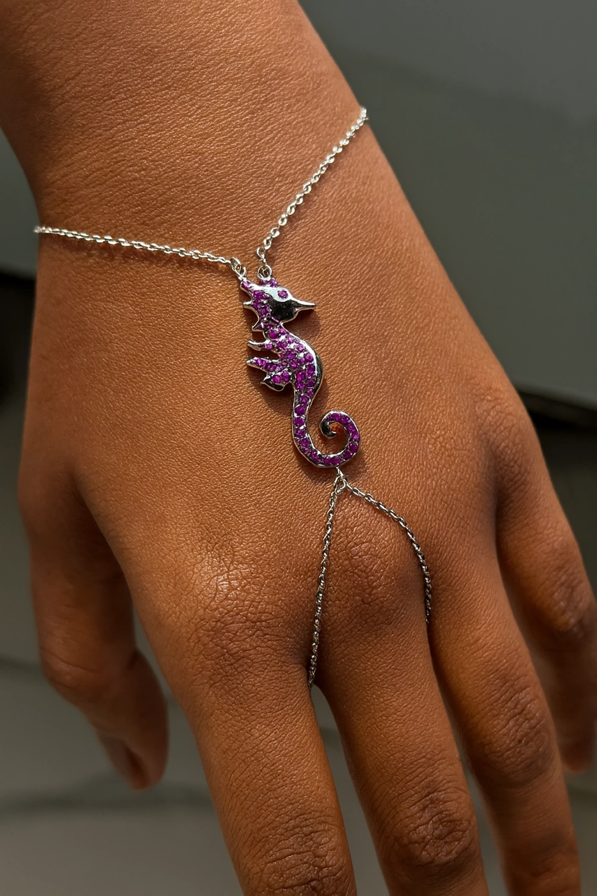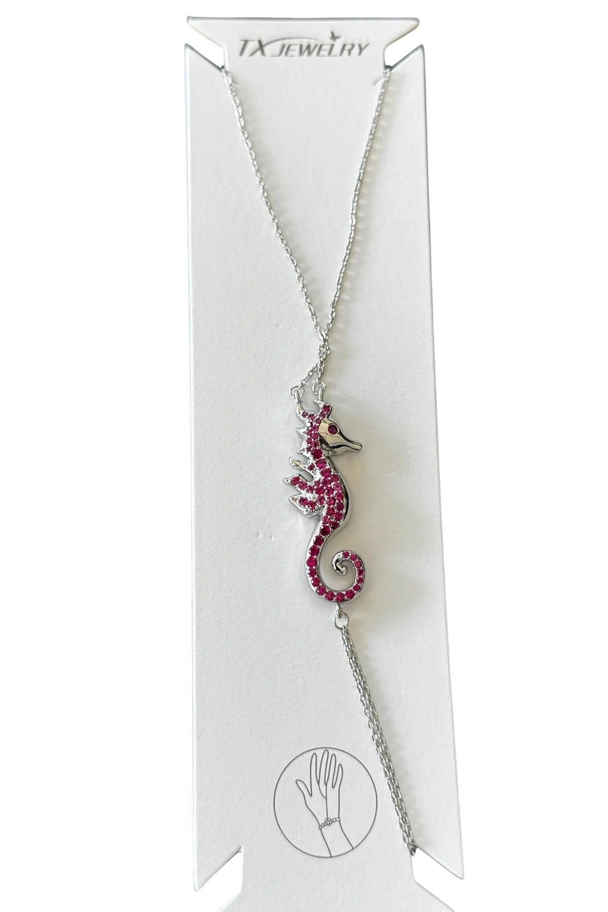 Gümüş Renk Deniz Atı Figürlü 14K Altın Kaplama TX Şahmeran