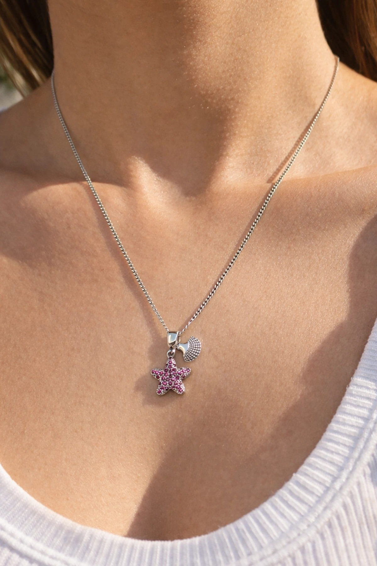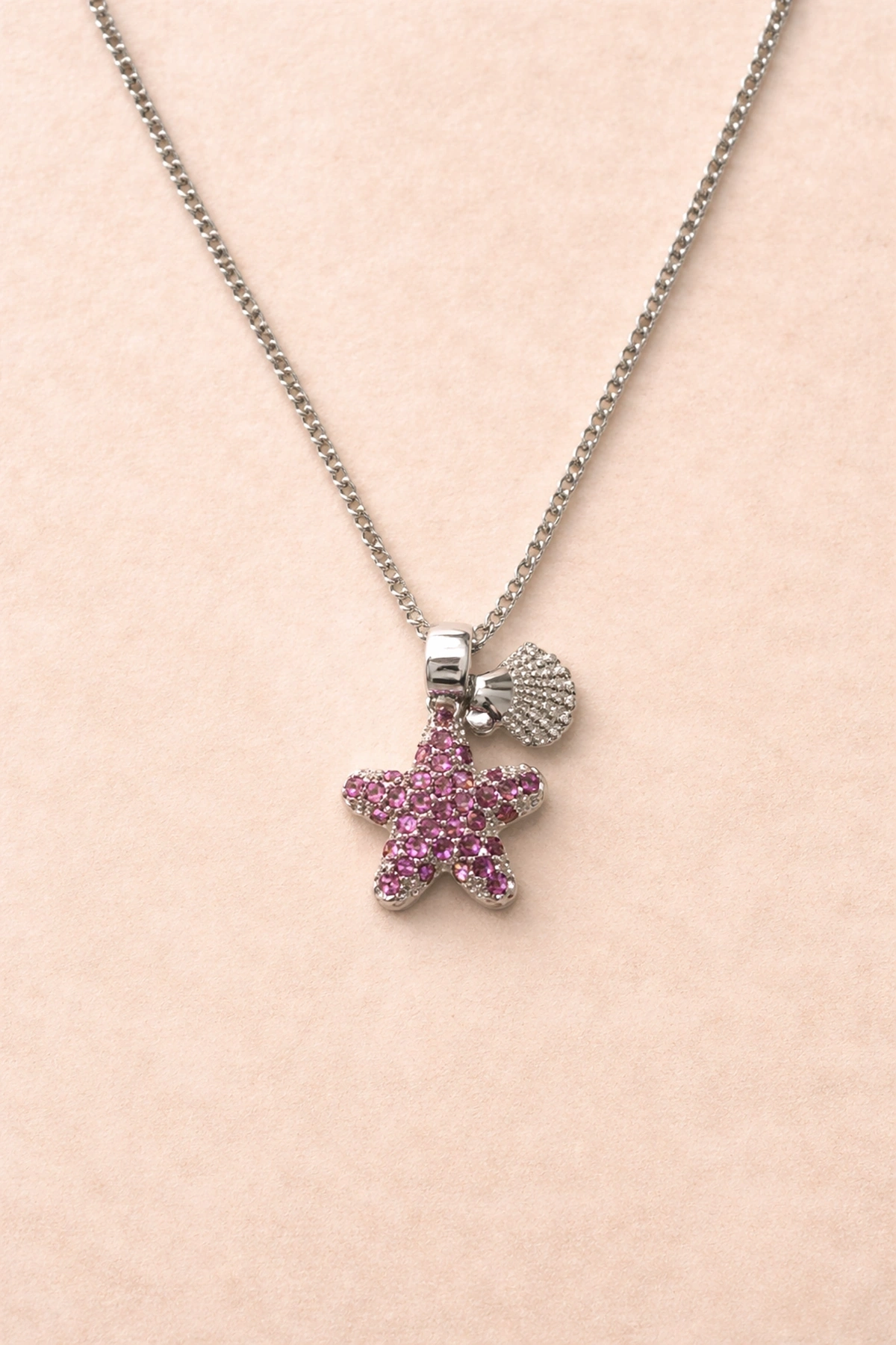 Gümüş Renk Deniz Kabuğu Ve Deniz Yıldızı Figürlü Çelik Kolye