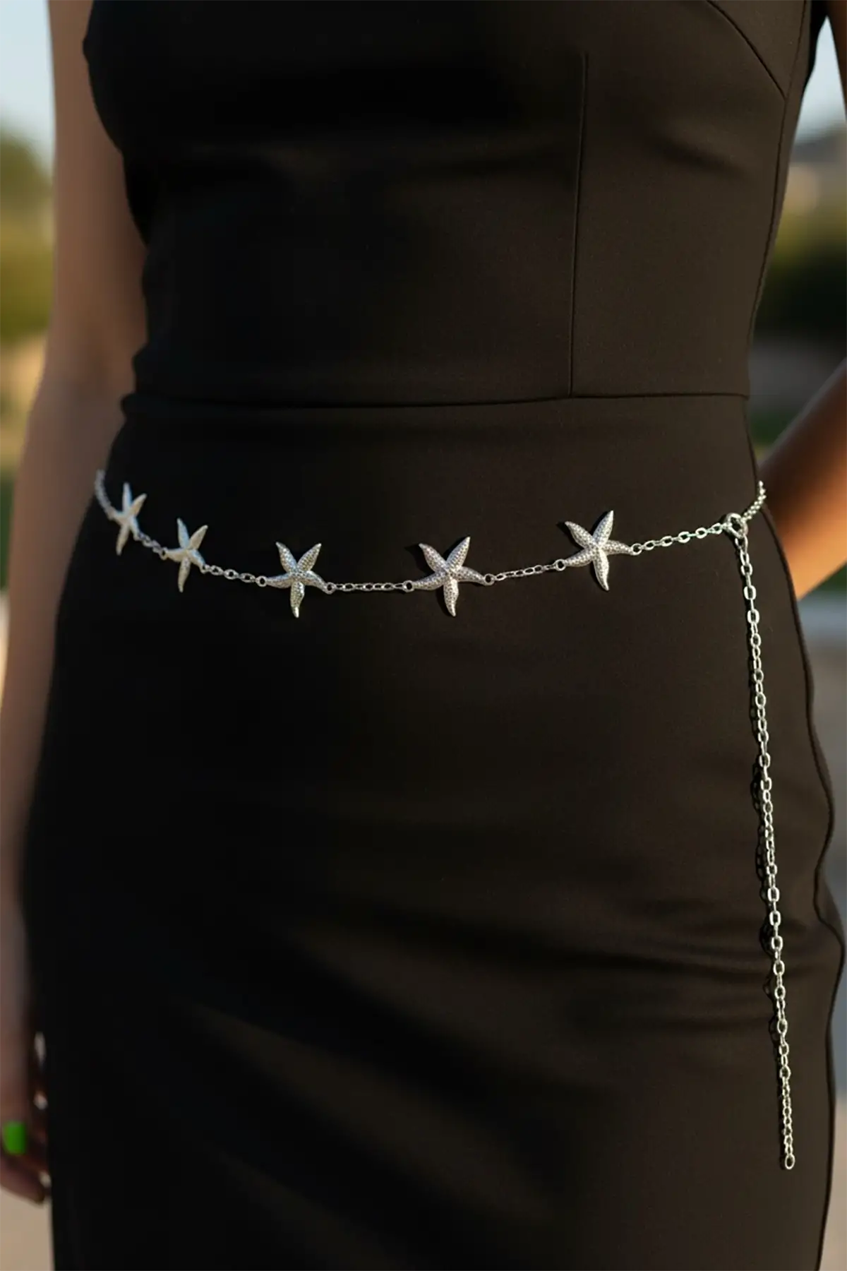 Gümüş Renk Deniz Yıldızı Figürlü Zincir Kemer