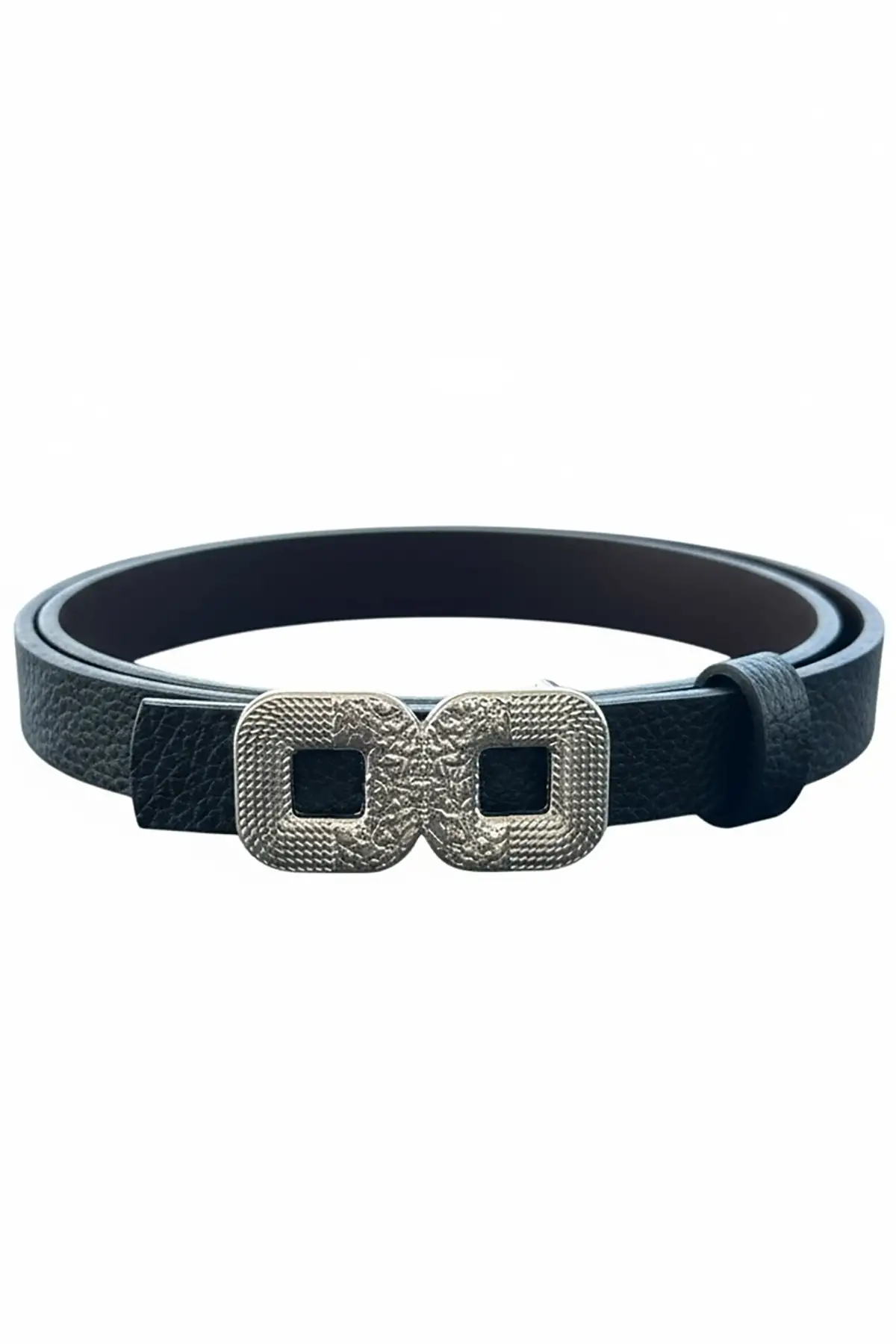 Gümüş Renk Deri Detaylı Kadın Kemer