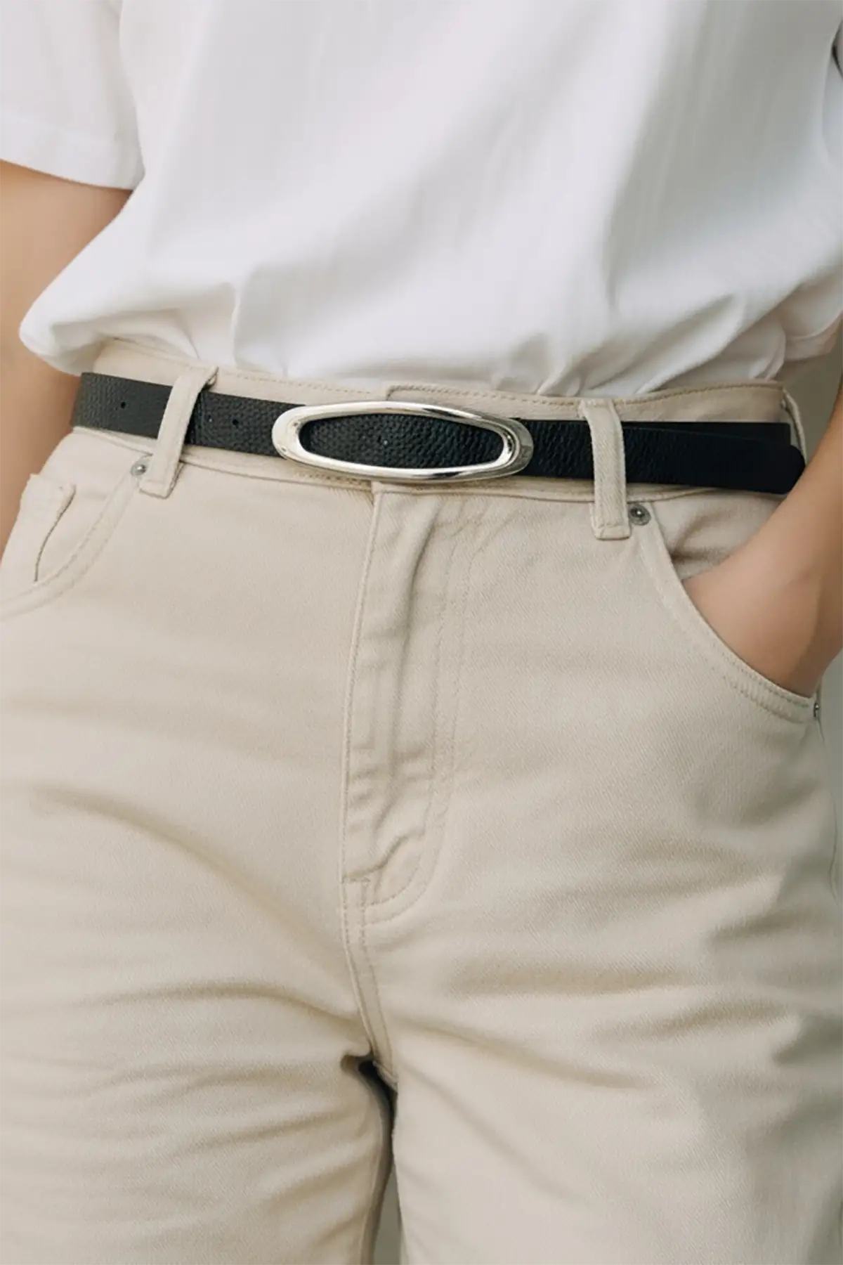 Gümüş Renk Deri Detaylı Kadın Kemer