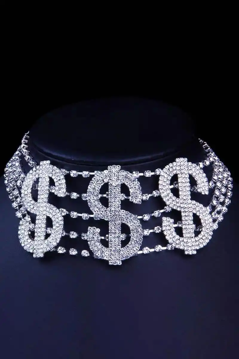 Gümüş Renk Dolar Figürlü Choker Kolye