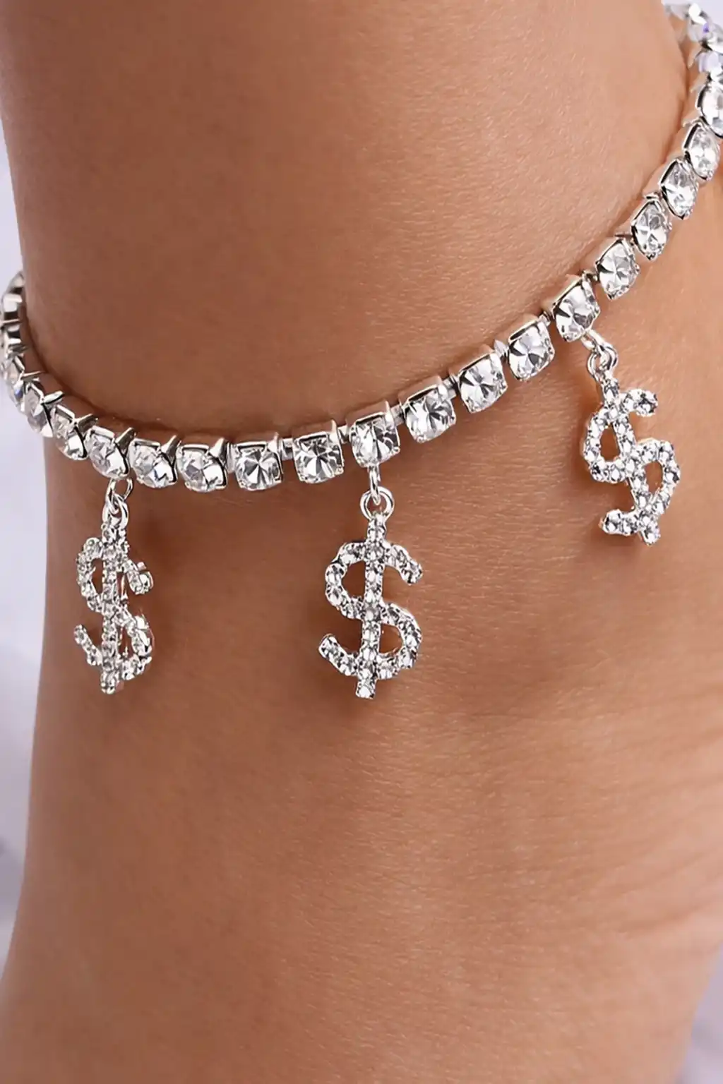 Gümüş Renk Dolar Figürlü Taş Detaylı Tasarım Halhal